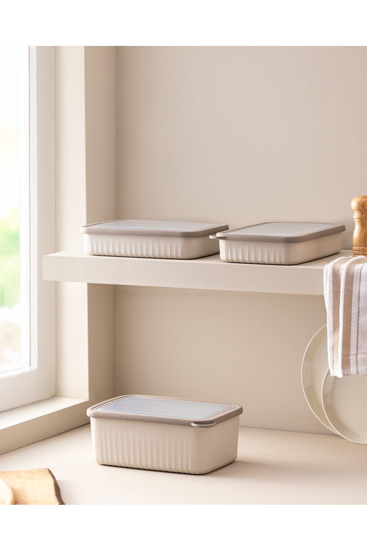 Lucca 3'lü Dikdörtgen Saklama Kabı Seti - Bej