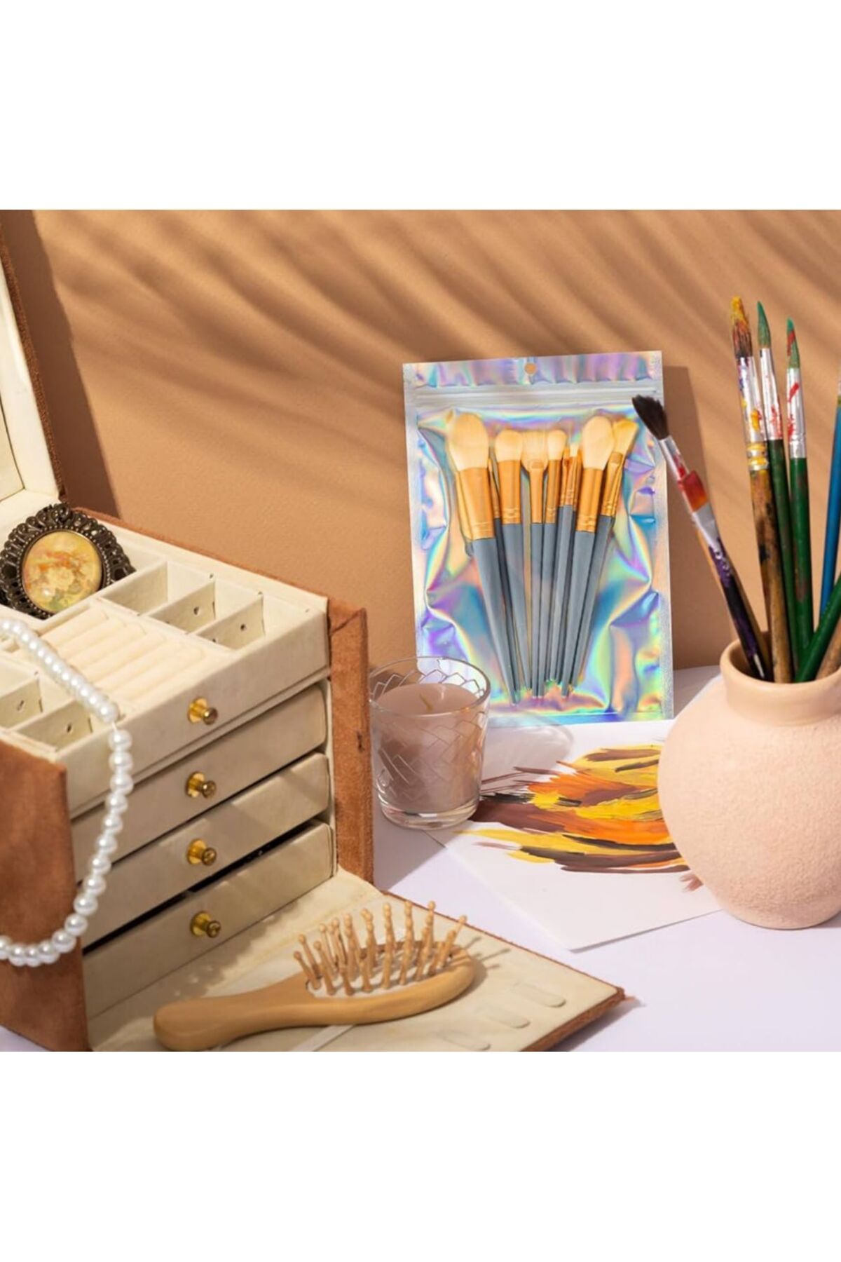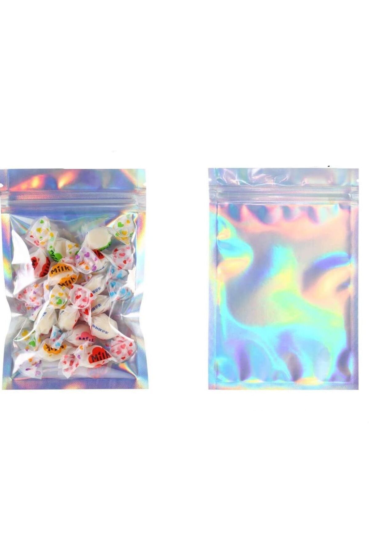 [Holografik] Koku geçirmez çanta parlak ve güzel bir renge sahiptir, önü şeffaftır, çantanın ne olduğunu görmek kolaydır ve arka kısmı holografik renktedir, depolamanın daha gelişmiş görünmesini sağlar