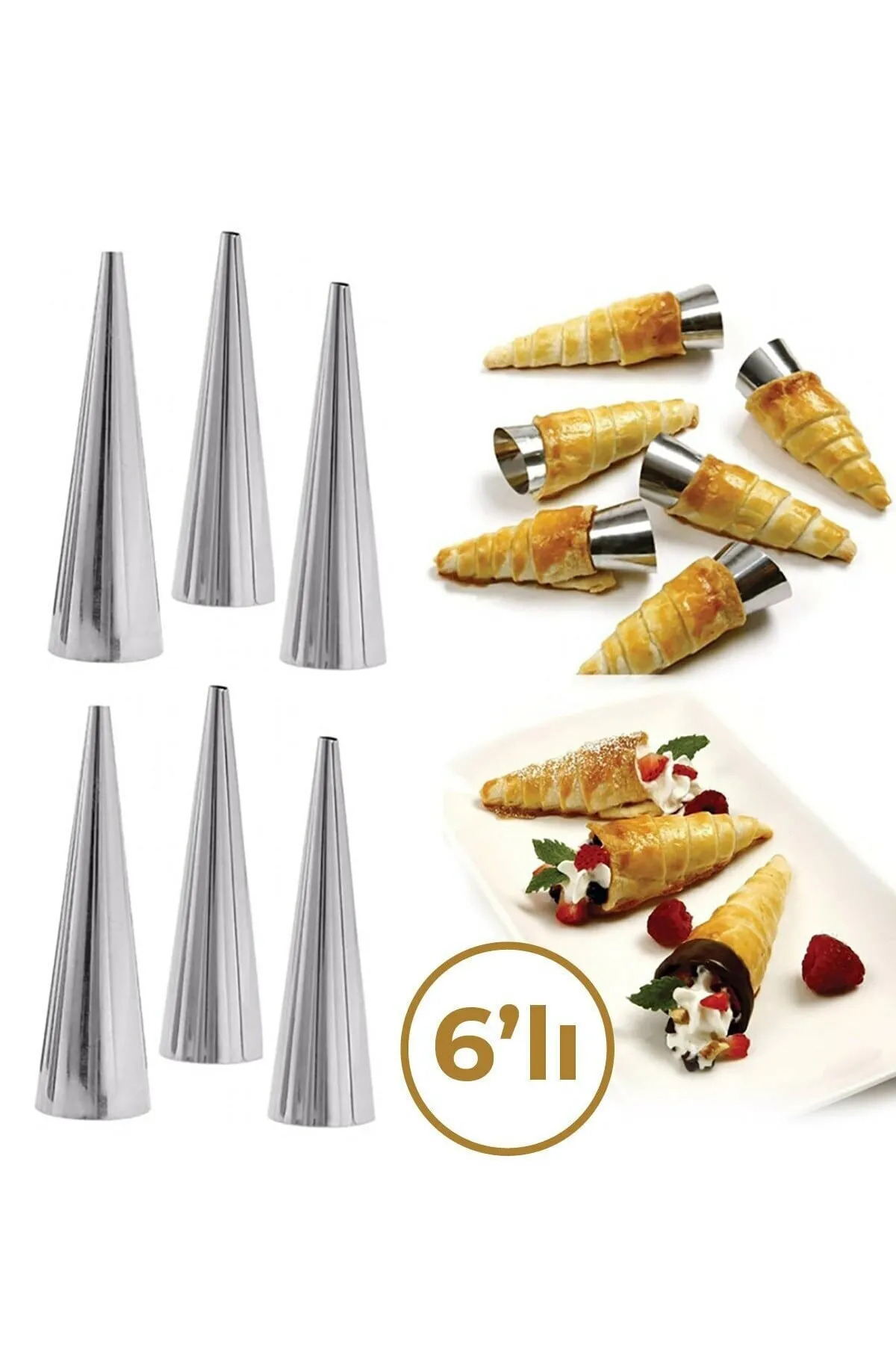 6'lı Paslanmaz Çelik Kurabiye Ve Hamur Şekillendirici Korne Kalıbı 12 cm