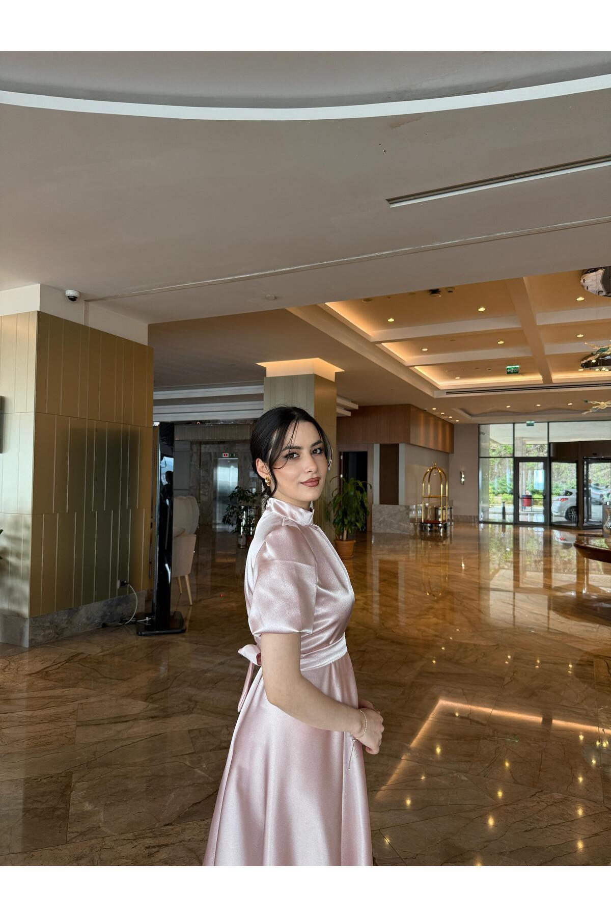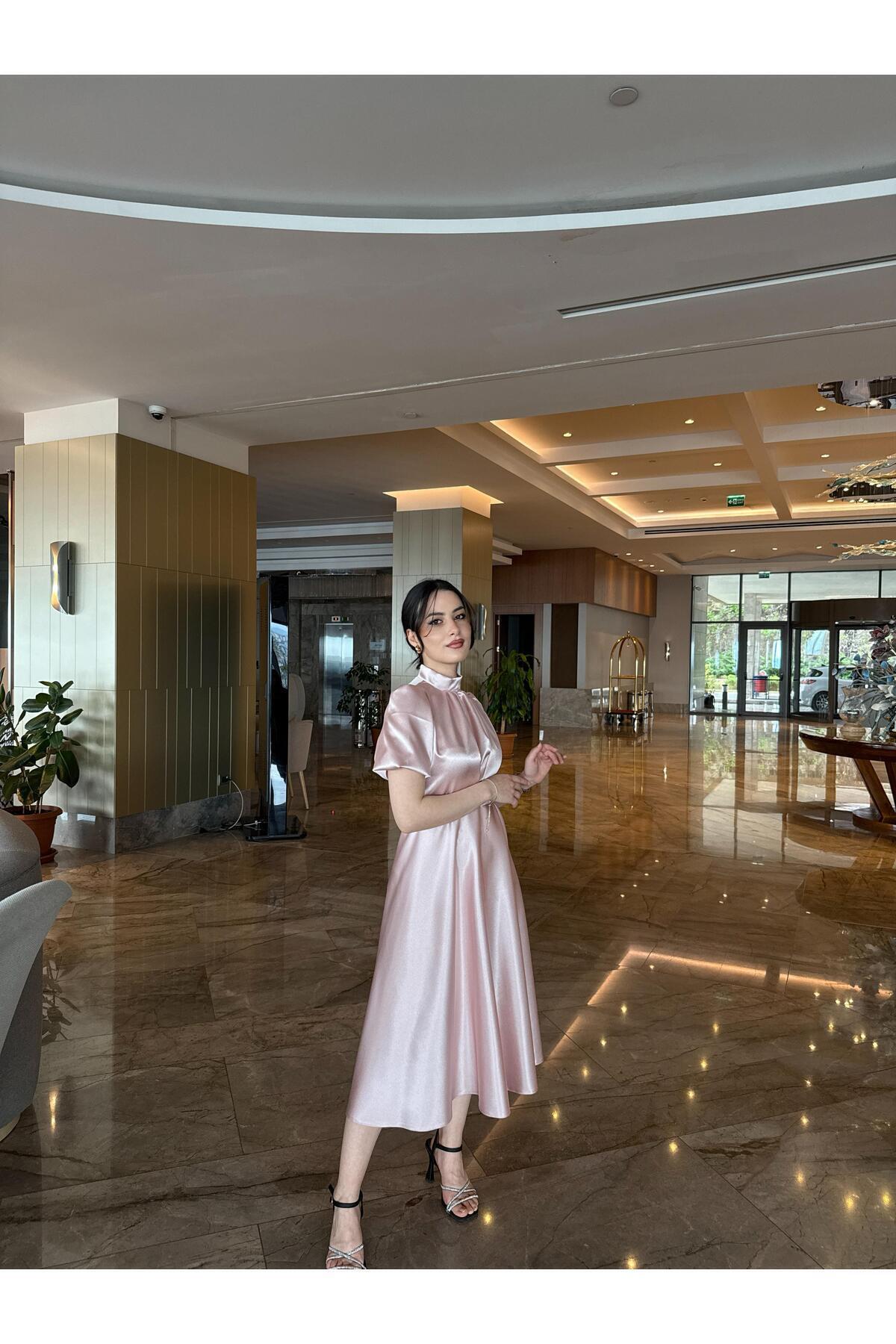- Zarif pembe tonlarıyla dikkat çeken bu midi boy elbise, günlük kullanımdan özel davetlere kadar her ortamda şıklığınızı tamamlar.