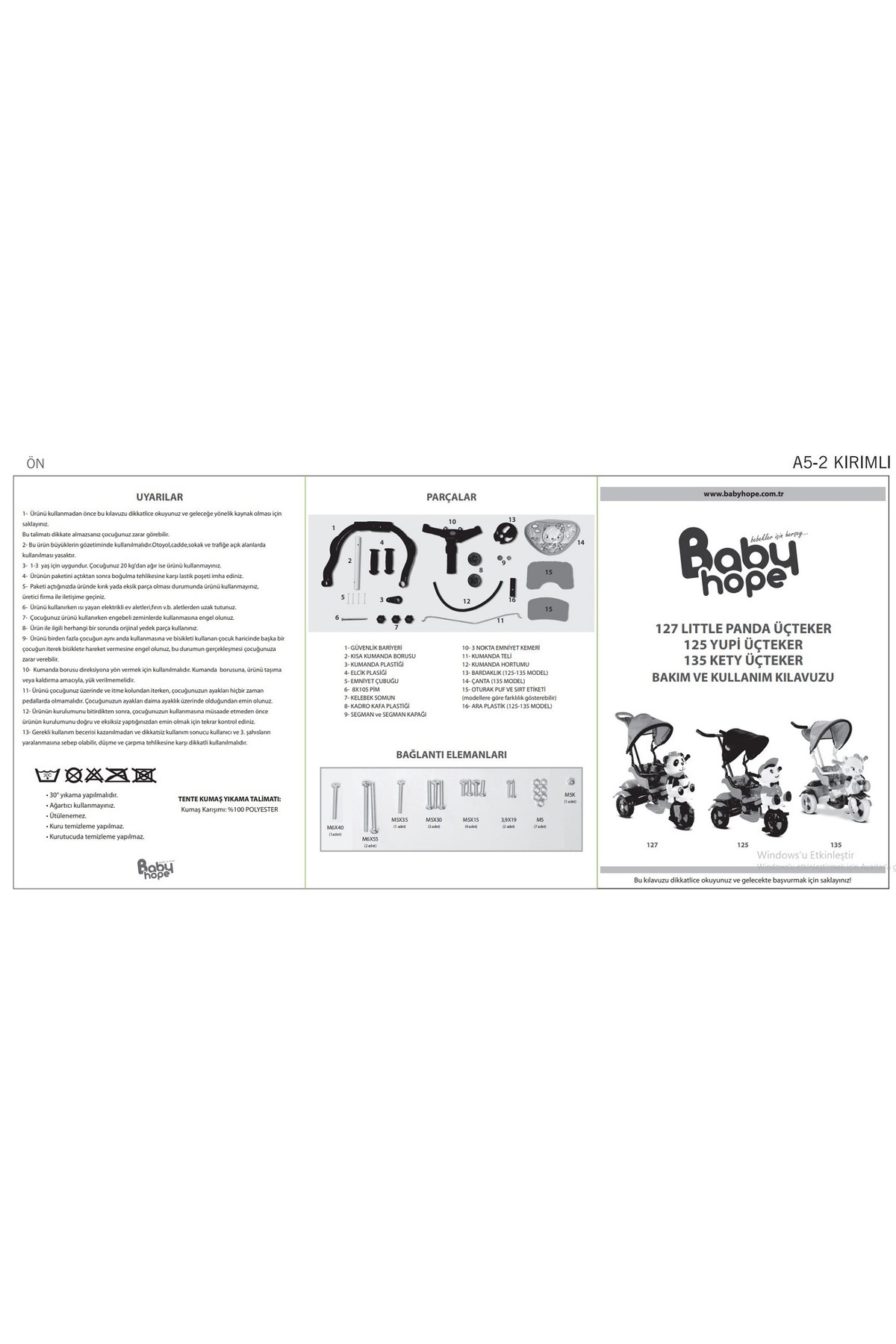 Toys 127 Panda Üç Tekerlekli Tenteli Ebeveyn Kontrollü Bisiklet Çocuk Bisikleti