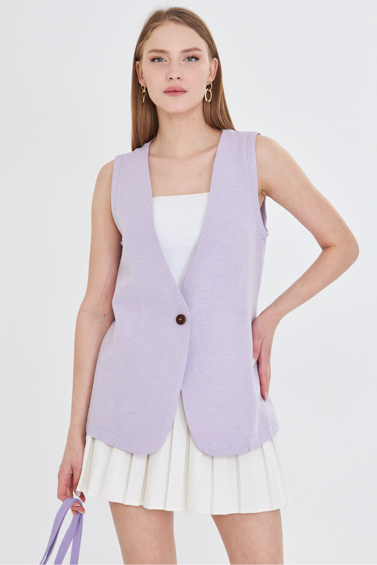 Kadın Yeşil V Yaka Tek Düğme Oversize Yelek ARM-25Y001036