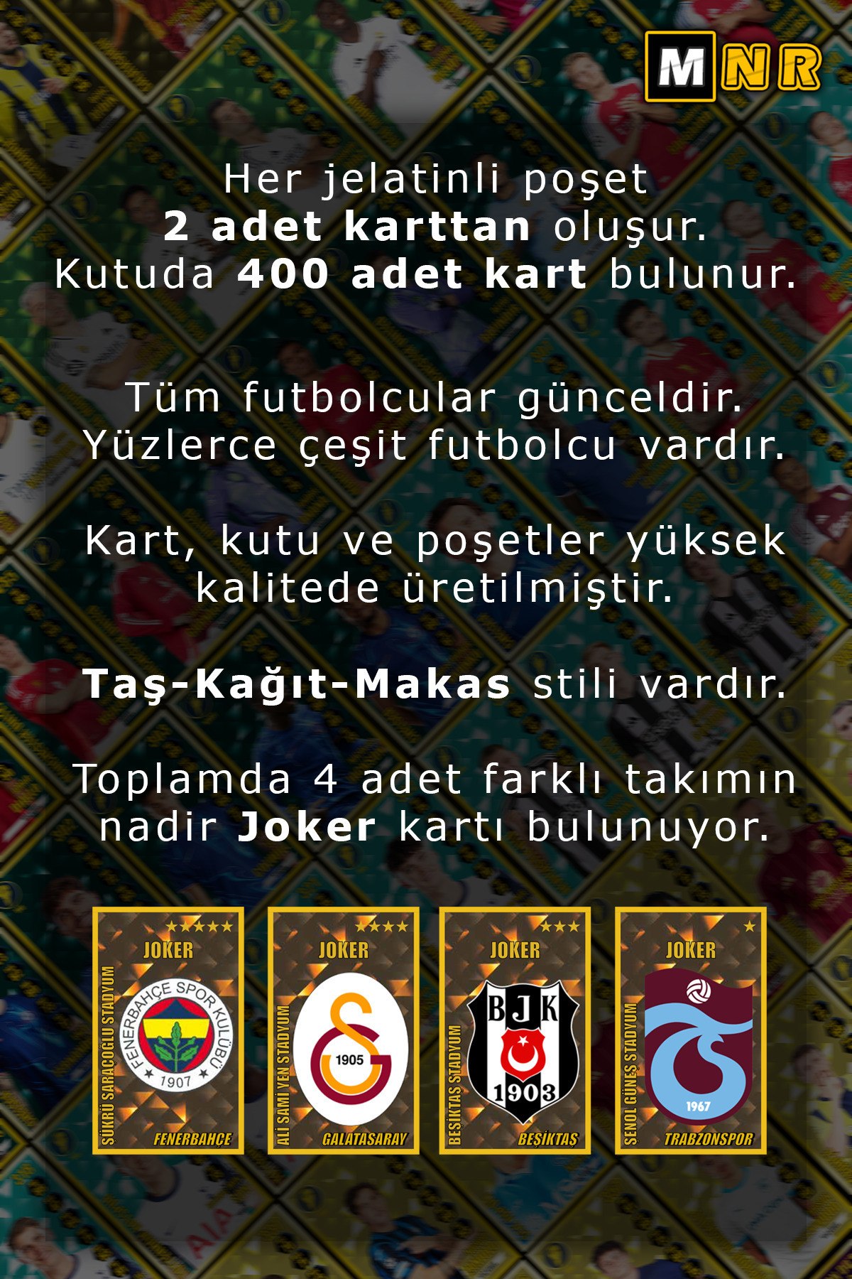 Zengin çeşit, yüzlerce futbolcu, taş kağıt makas, nadir joker kartları, yüksek kalite baskı, yüksek kalite yırtılmaz poşet