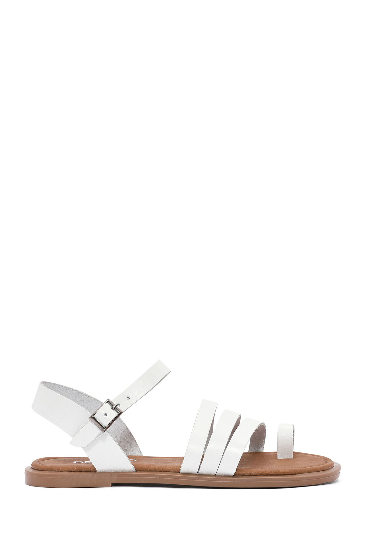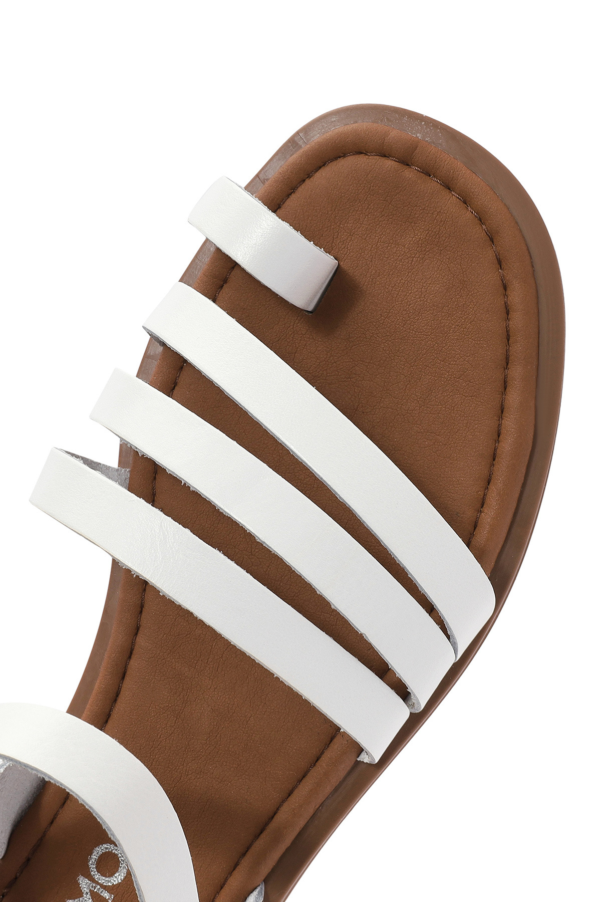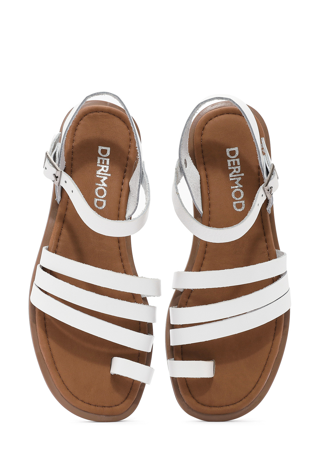 Kadın Beyaz Bilekten Bağlamalı Parmak Arası Deri Bodrum Sandalet Sığır derisi içermektedir.