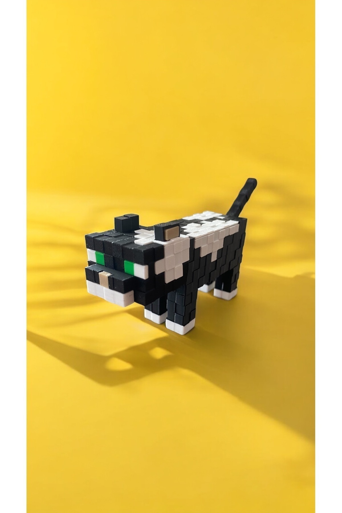 Blok Ve Pixel Temalı Kedi Figürü Hareketsiz Maden Ve Zanaat Minecraft 10 Cm