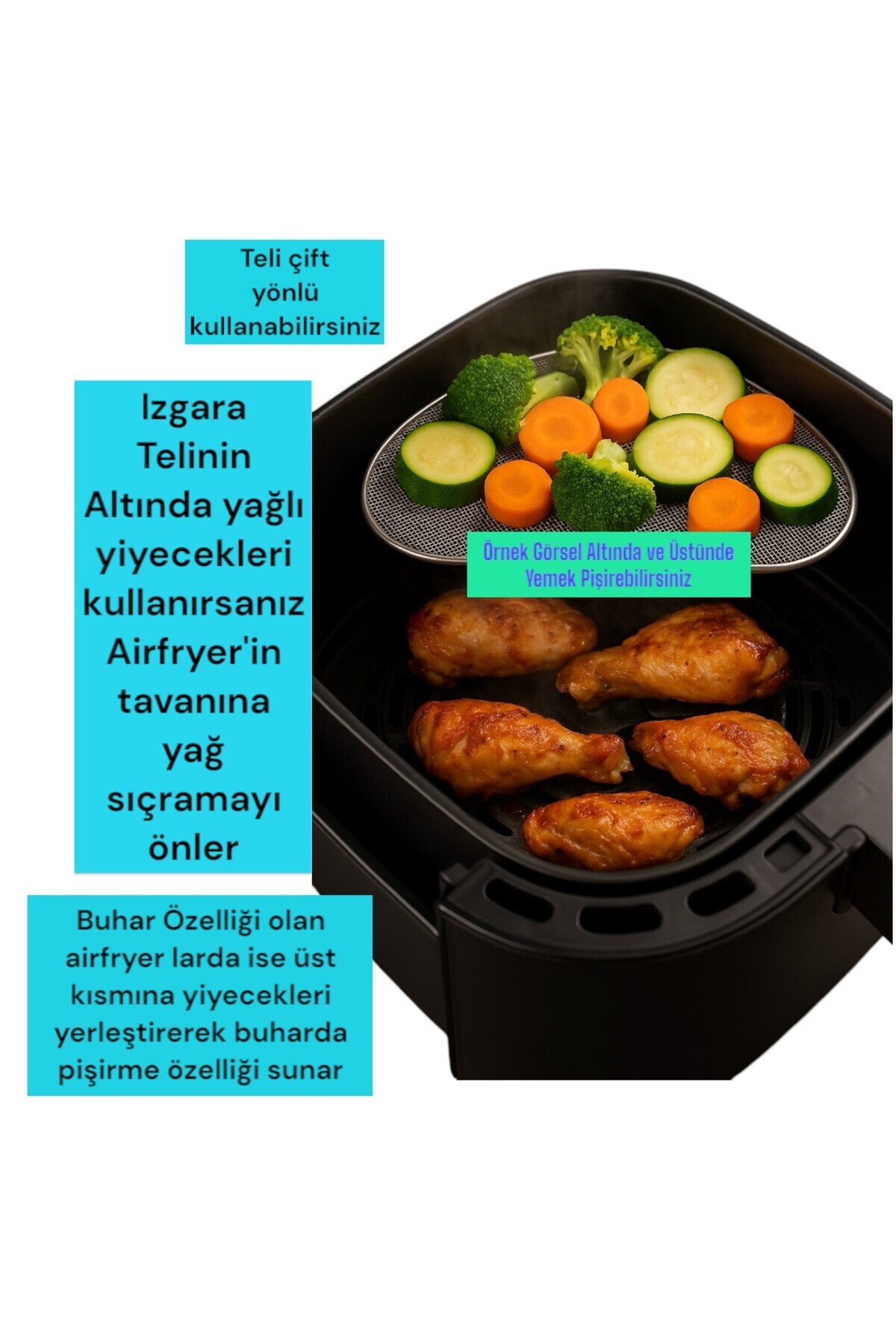 TEKNİK ÖZELLİKLER: Malzeme: 304 Paslanmaz Çelik Isıya Dayanıklılık: Yüksek sıcaklıklarda güvenli kullanım Uyumluluk: Pek çok farklı Airfryer modelinin haznesine uyum sağlar (kare veya oval haznelerle uyum kontrol ediniz) Kullanım Alanı: Buharla pişirme + yağ teması önleme Temizlik: Bulaşık makinesinde yıkanabilir Paket İçeriği: 1 adet çelik pişirme aparatı KİMLER İÇİN UYGUN? Daha sağlıklı ve yağsız pişirmek isteyenler Yemeklerin yumuşak ve sulu kalmasını isteyenler Airfryer haznesini temiz tutmak isteyenler Pratik & hijyenik çözümler arayanlar