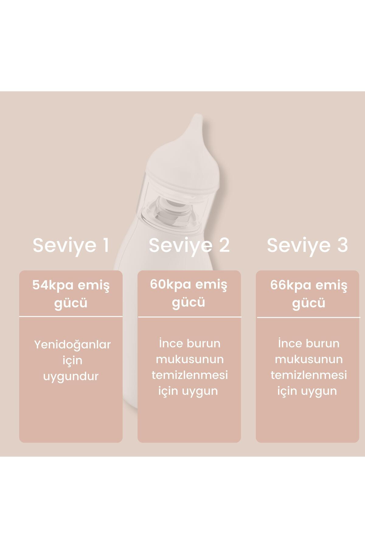 3 Kademeli Emiş Gücü Cihazda yer alan düşük, orta ve yüksek olmak üzere 3 farklı emiş gücü sayesinde her yaşta ve hassasiyetteki bebekler için ideal kullanım sunar.