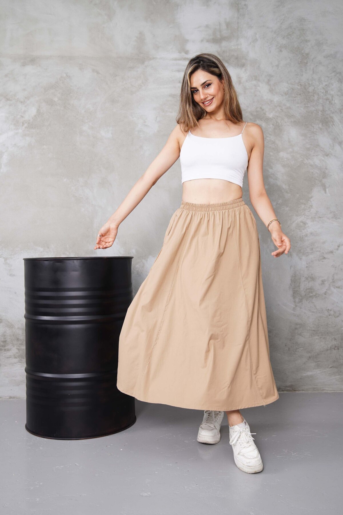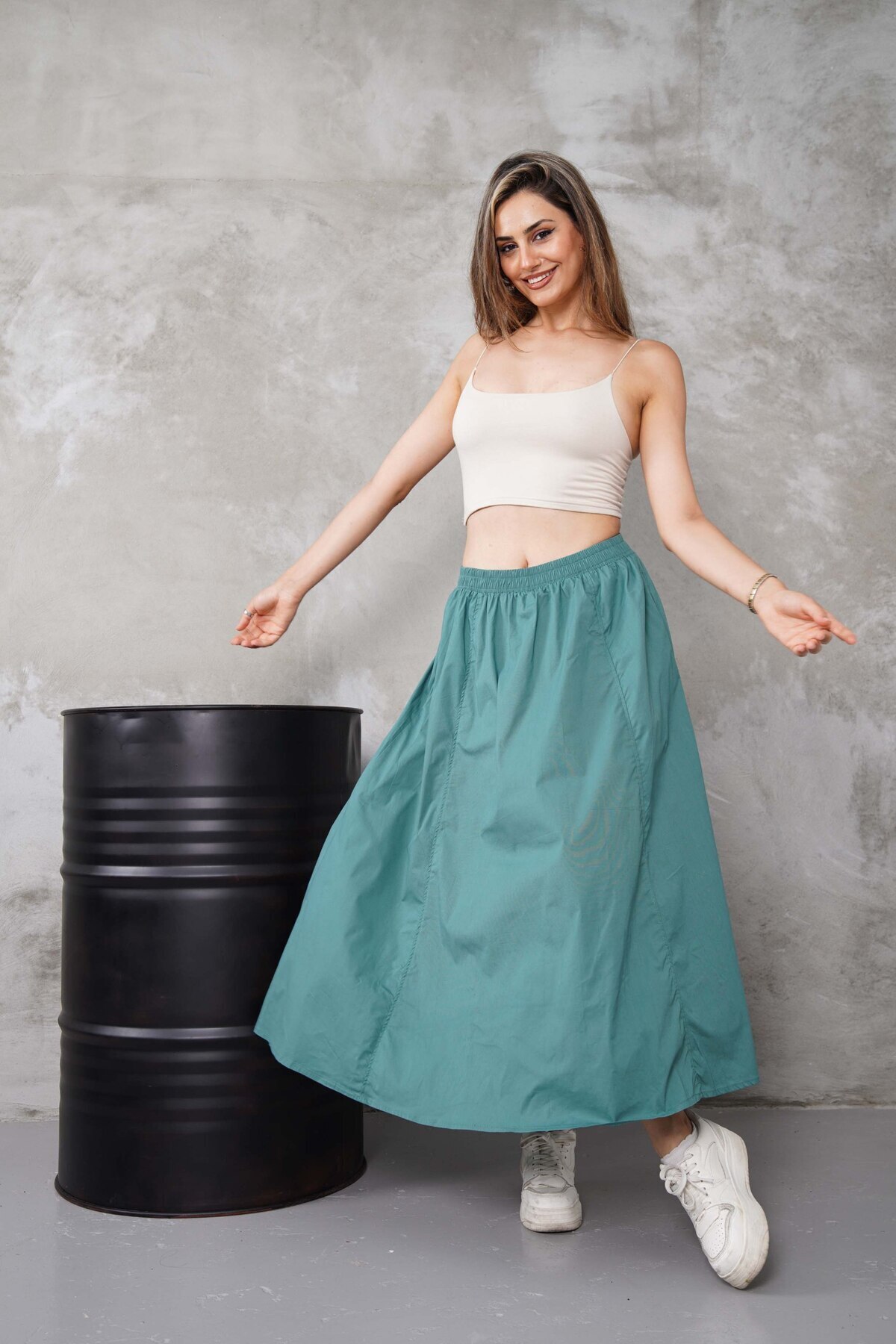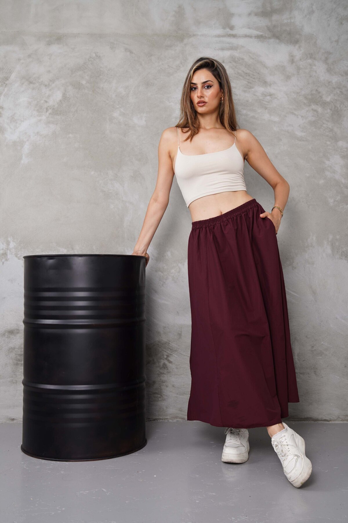 - Düz deseni sayesinde farklı üst giyim parçalarıyla kolayca kombinlenebilir.