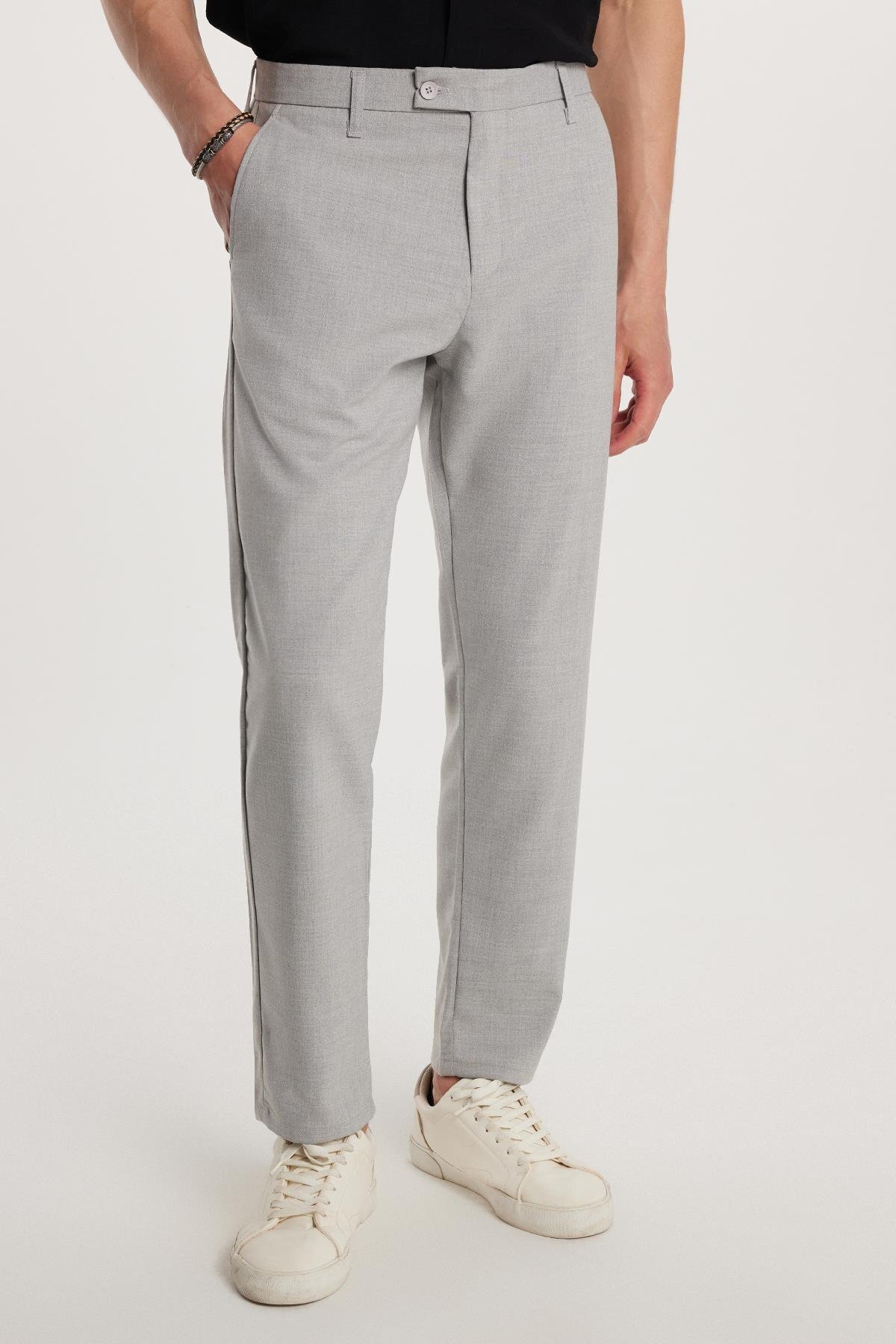 Erkek Slim Fit Dar Kesim Esnek Yan Cepli Bilek Boy Canvas Kesim Siyah Pantolon