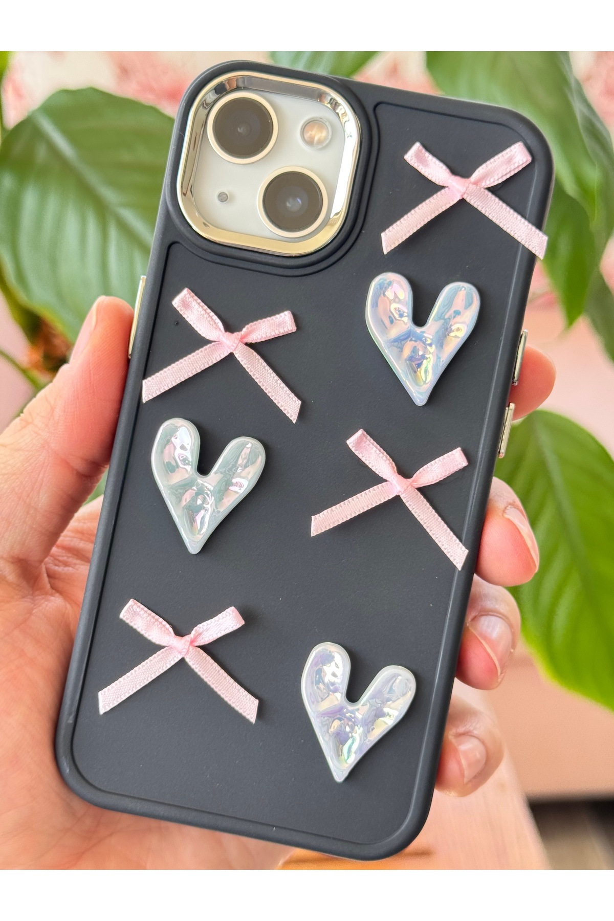 Apple iPhone 13 modelinize özel tasarlanmış, telefonunuzu darbelere ve çizilmelere karşı koruyan parlak pembe çiçek desenli kılıf.