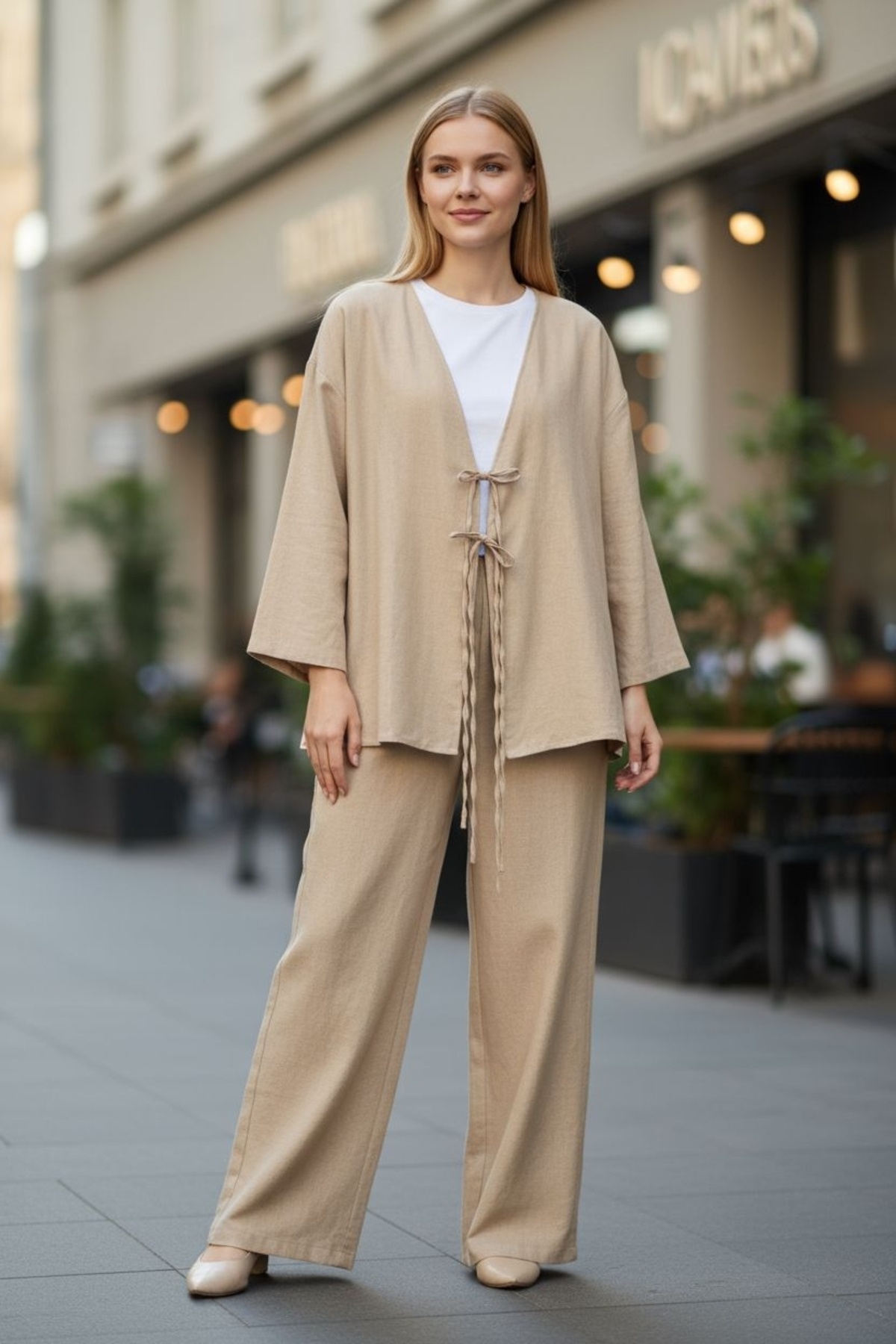 - İnce keten kumaştan üretilmiş, hafif ve rahat bir kullanım sunar.