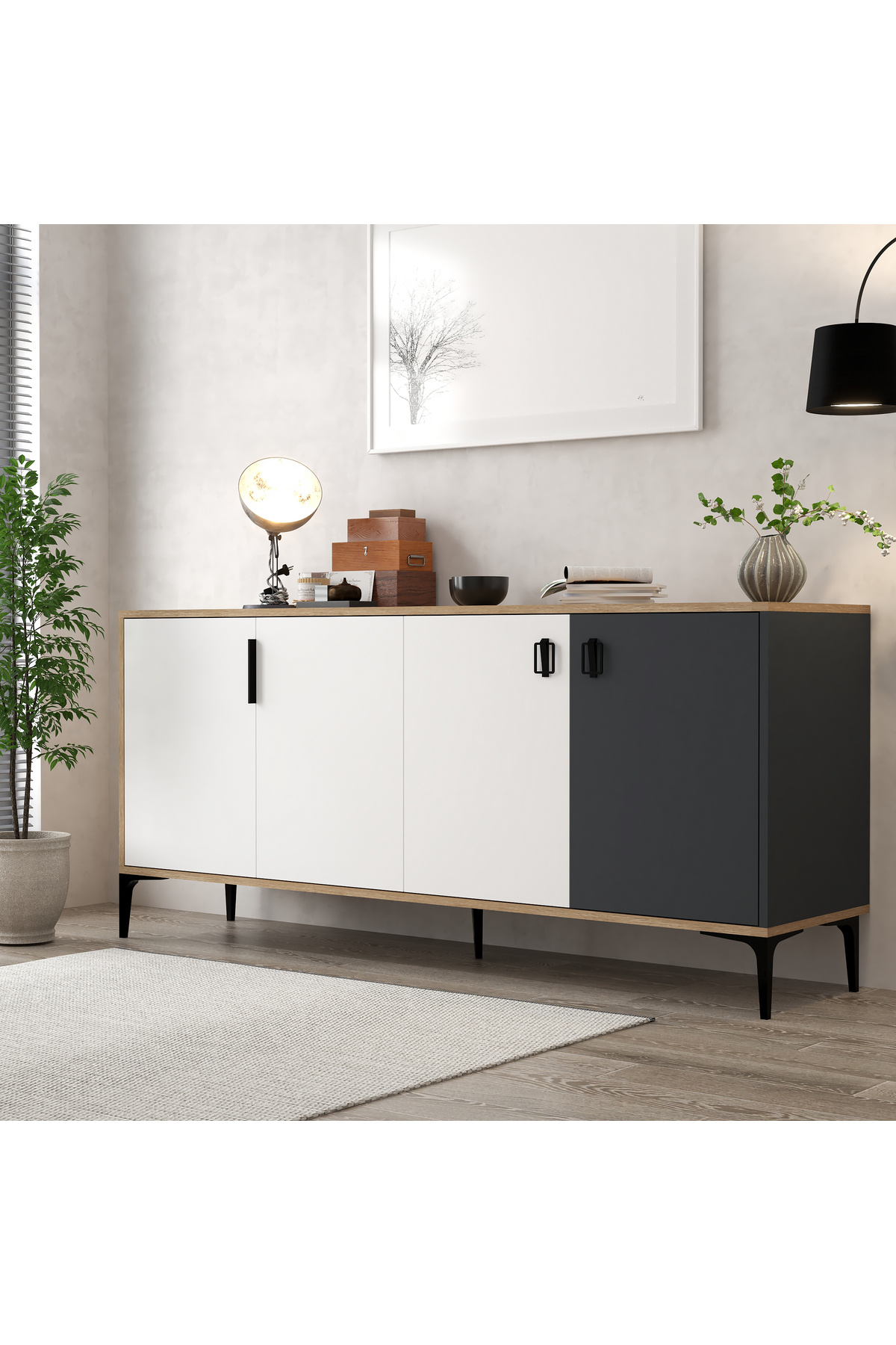 4002 Neva Konsol 180 Cm Sepet - Beyaz - Antrasit Tv Ünitesi - Yemek Odası - Kahve Köşesi