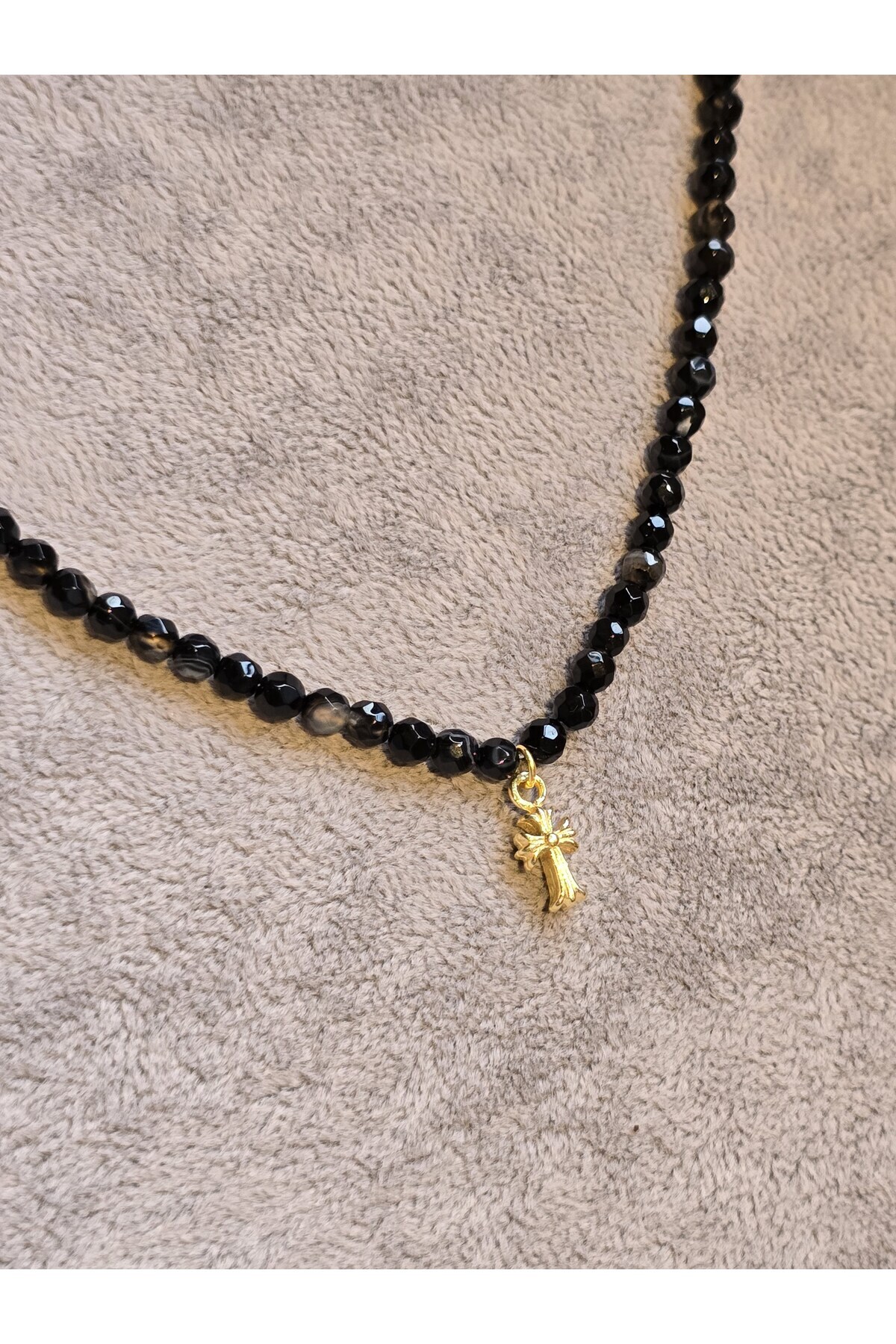 Ürün Detayları: Taş: Doğal Siyah Oniks (Faset kesim, parlak yüzeyli) Uç Detay: 925 ayar gümüş üzeri altın kaplama