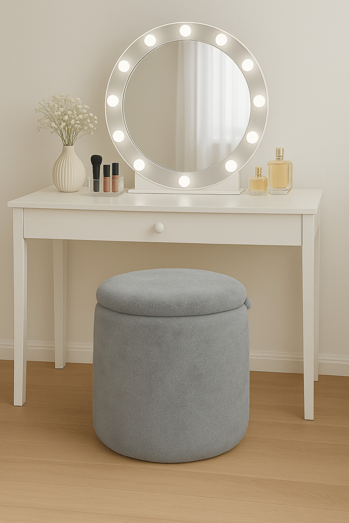 - Modern tasarımıyla dikkat çeken Lydia makyaj masası pufu, hem fonksiyonel hem de şık bir aksesuar olarak evinizin her köşesine uyum sağlar.