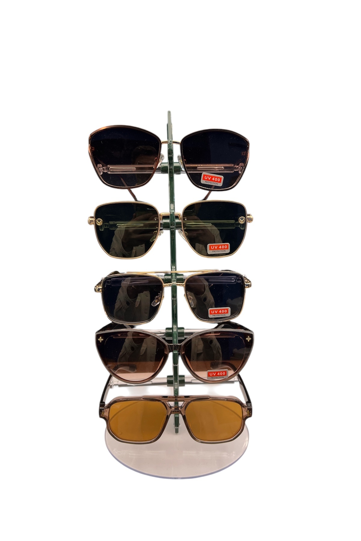 Gözlük Standı Yelken Model, 5 Gözlük Kapasiteli Teşhir Standı Koyu Yeşil