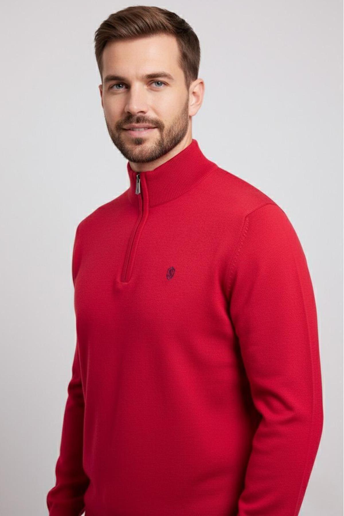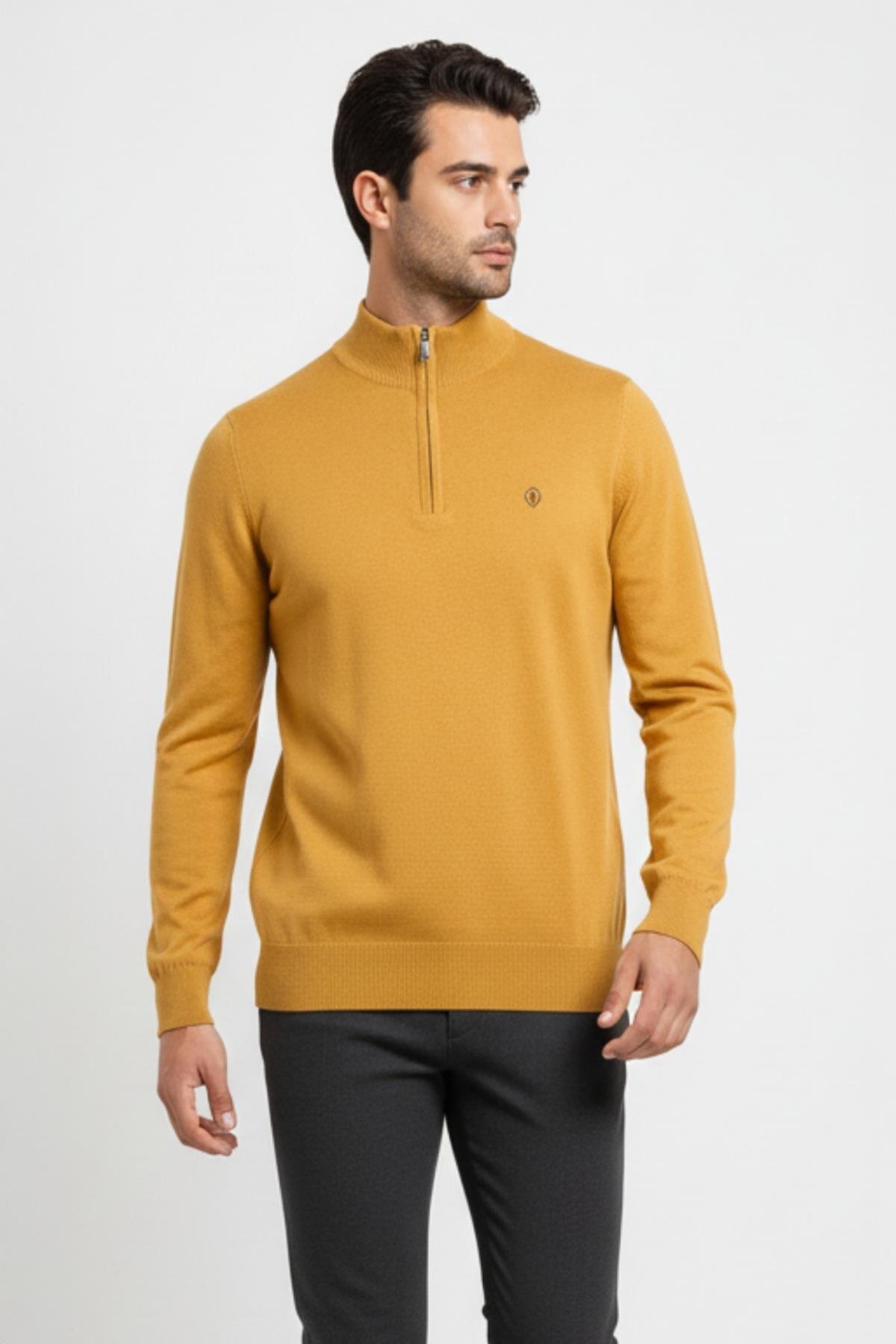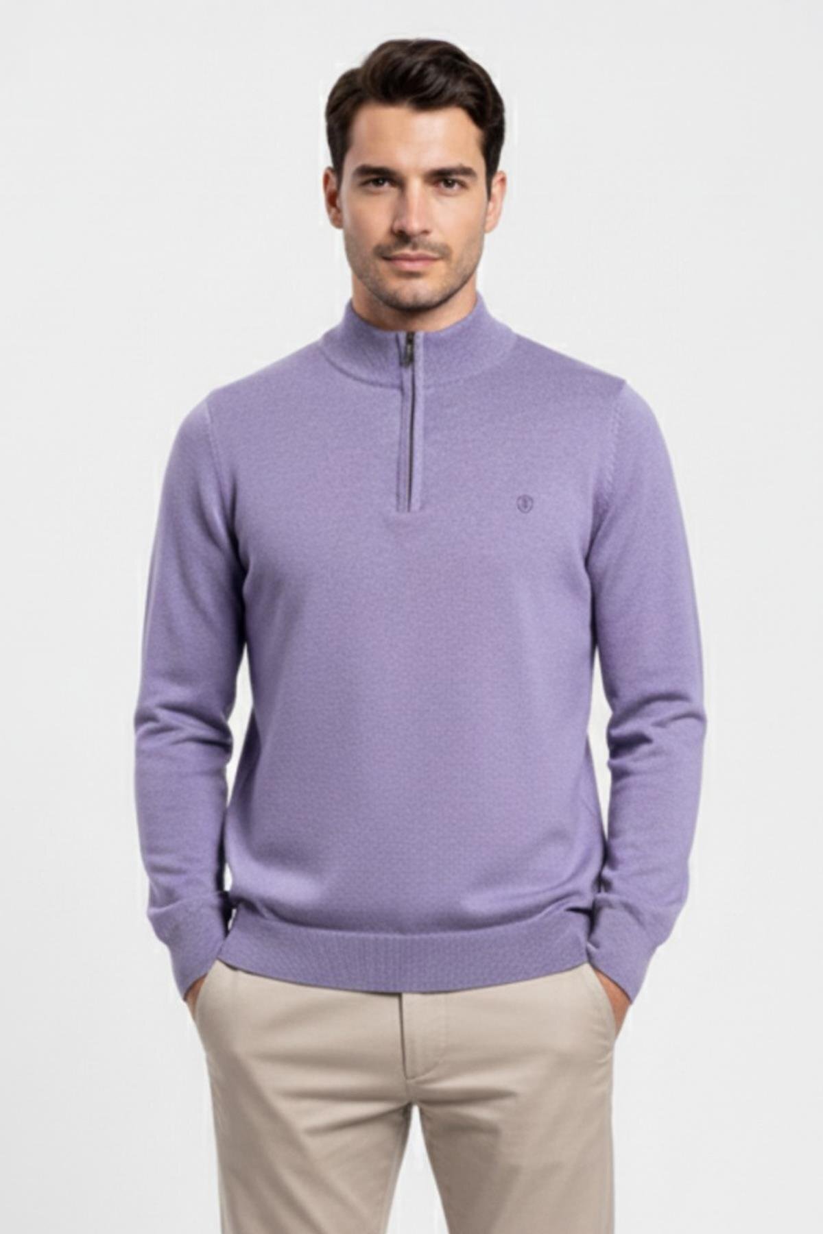 Fermuarlı Yarım Balıkçı Yaka Pamuk Erkek Triko Kazak Açık İndigo