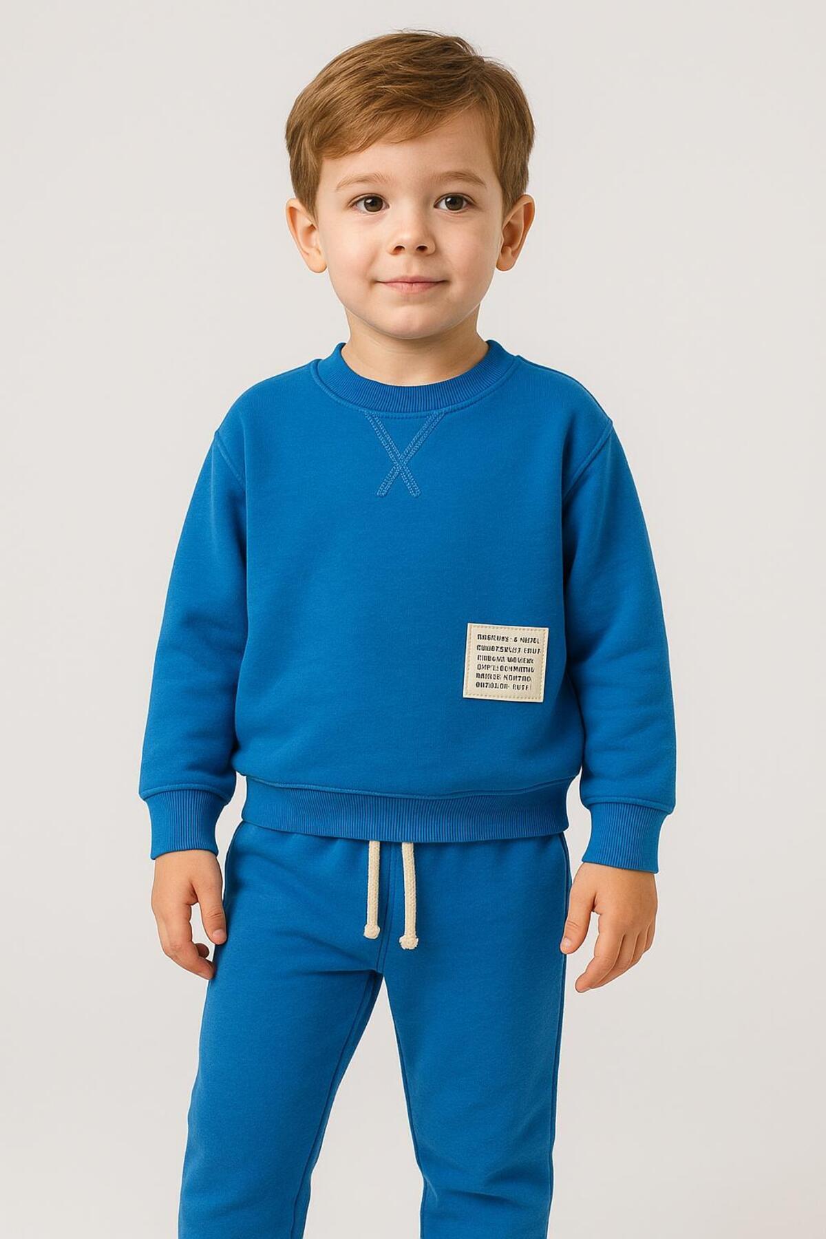 Tarz Etiketli Mevsimlik Pamuklu Bebek&Çocuk 2'li Alt Üst Takım-Mavi
