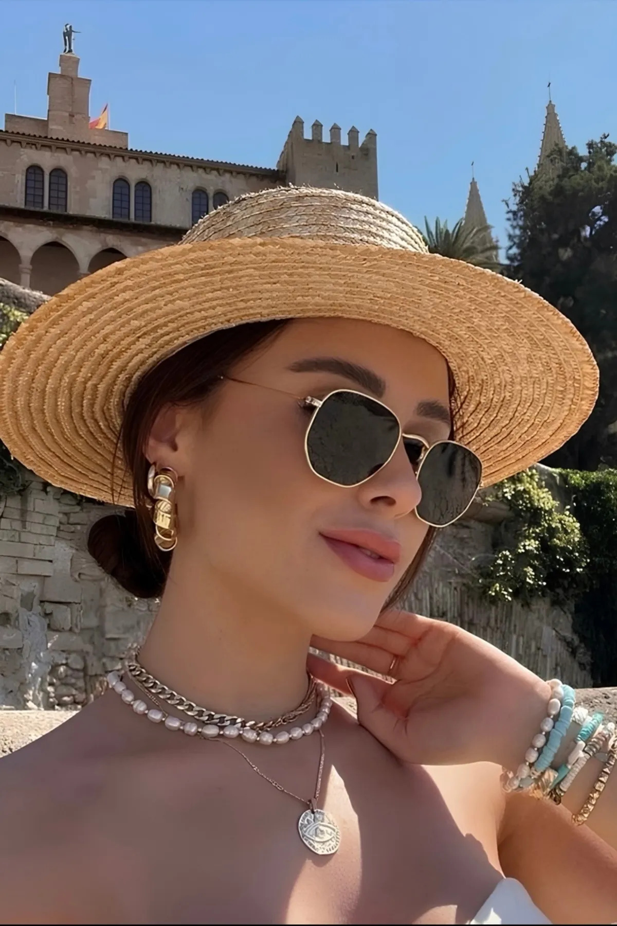 - Geometrik çerçeve formu modern ve trend bir görünüm kazandırırken, beşgen şekliyle dikkat çekici detaylar ekler.