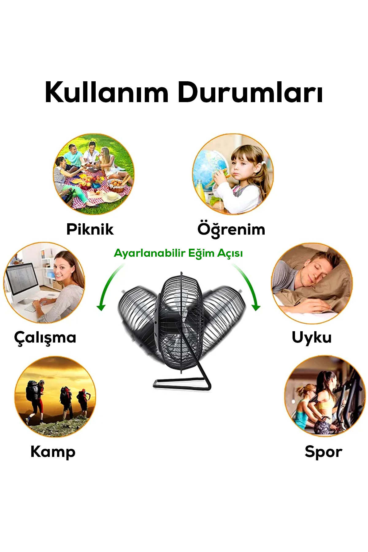 USB ile Çalışan Sessiz Metal Masaüstü Mini Vantilatör | Ayarlanabilir Açılı Soğutucu Fan