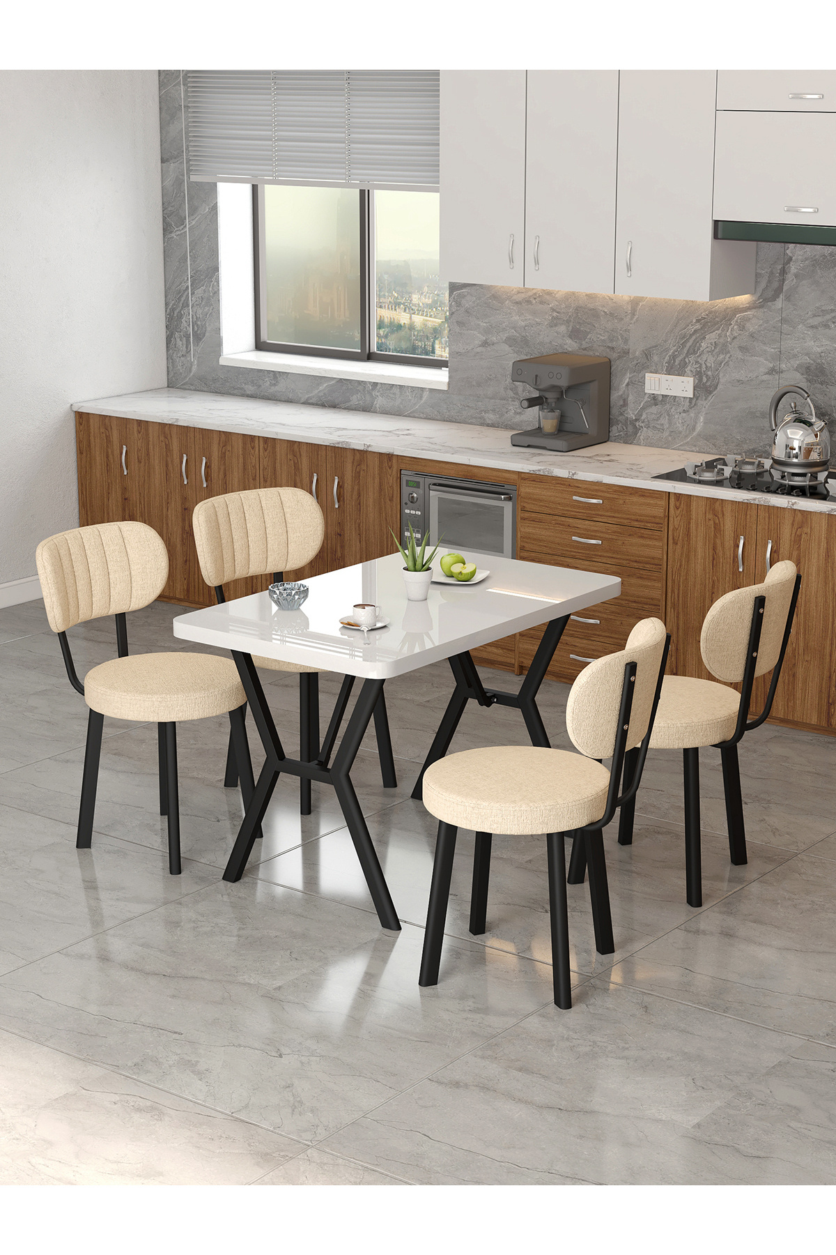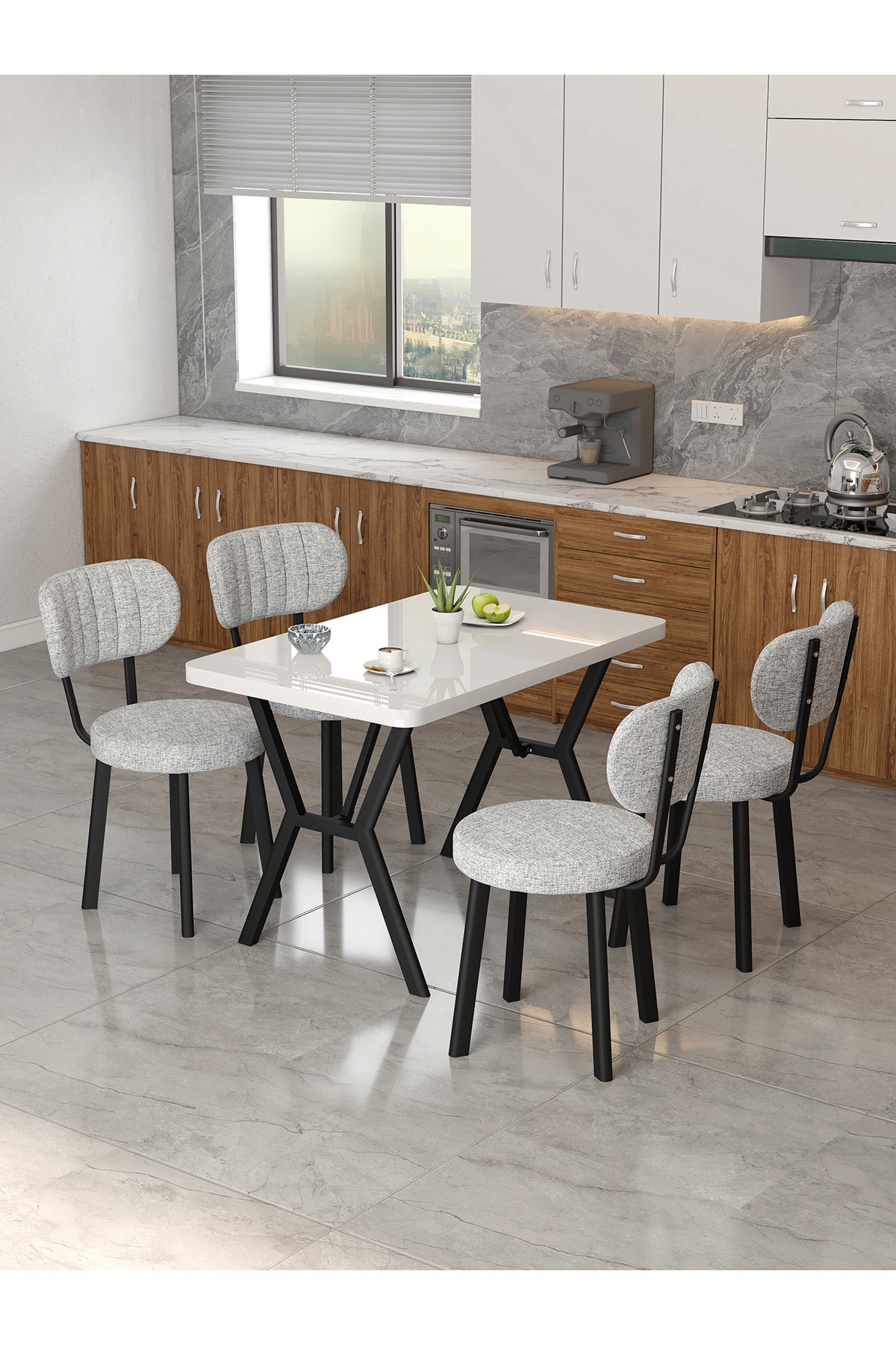 Azra 70x110cm Beyaz Mutfak Masası, Mutfak Masası Takımı, Yemek Masası, 4 Açık Gri Sandalye