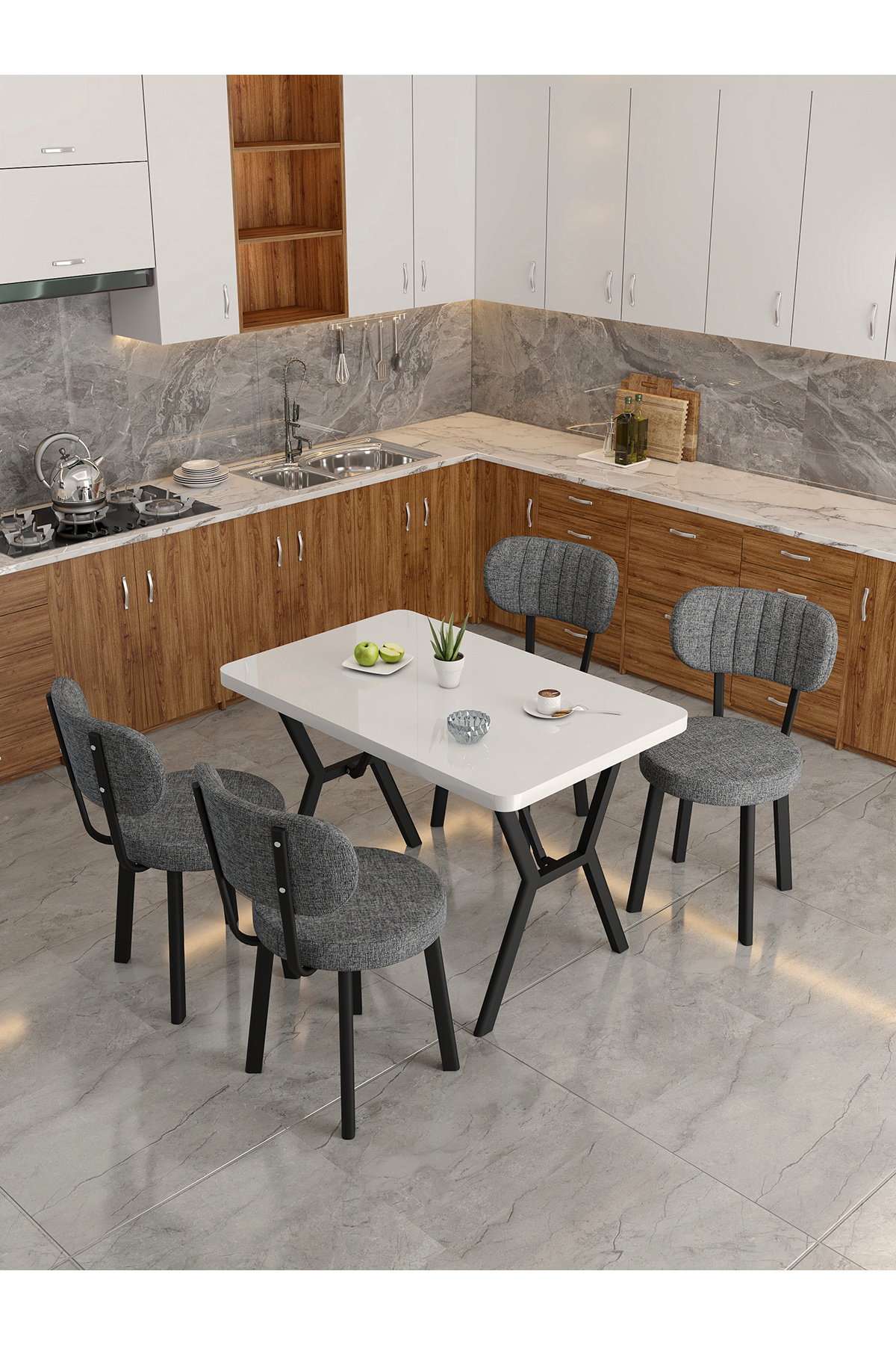 Azra 70x110cm Beyaz Mutfak Masası, Mutfak Masası Takımı, Yemek Masası, 4 Koyu Gri Sandalye