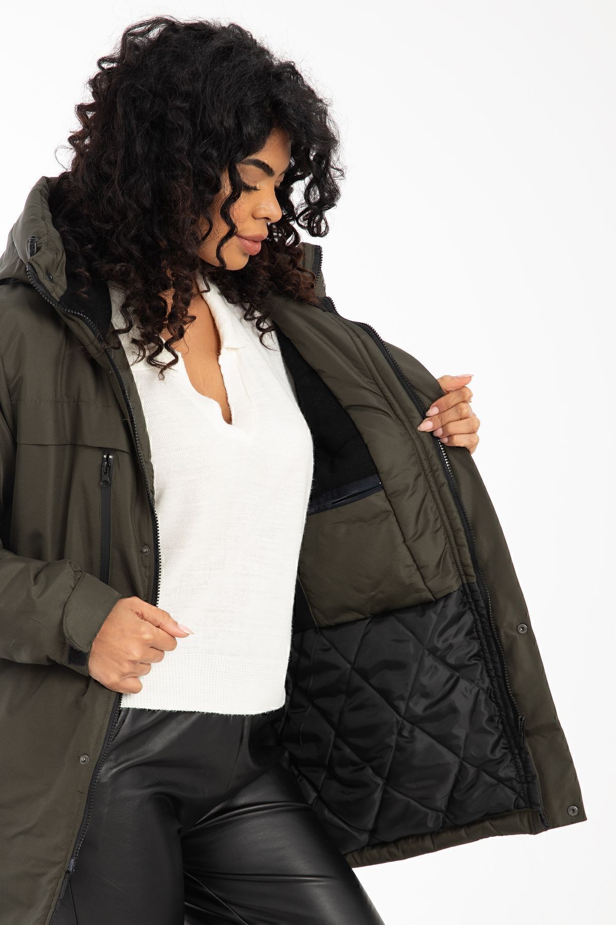 Spor Kadın Haki Içi Polarlı Su Ve Rüzgar Geçirmez Kapüşonlu Kışlık Spor Mont & Kaban & Parka