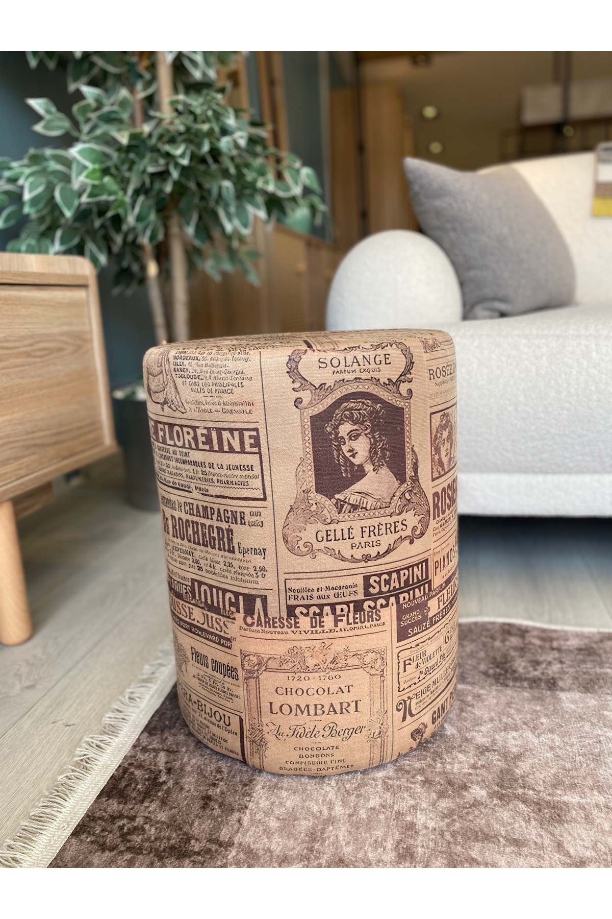 Gazete desen puf’umuz Silinebilir Kumaş olup oturma çapı : 36 cm yükseklik : 45 cm dir.