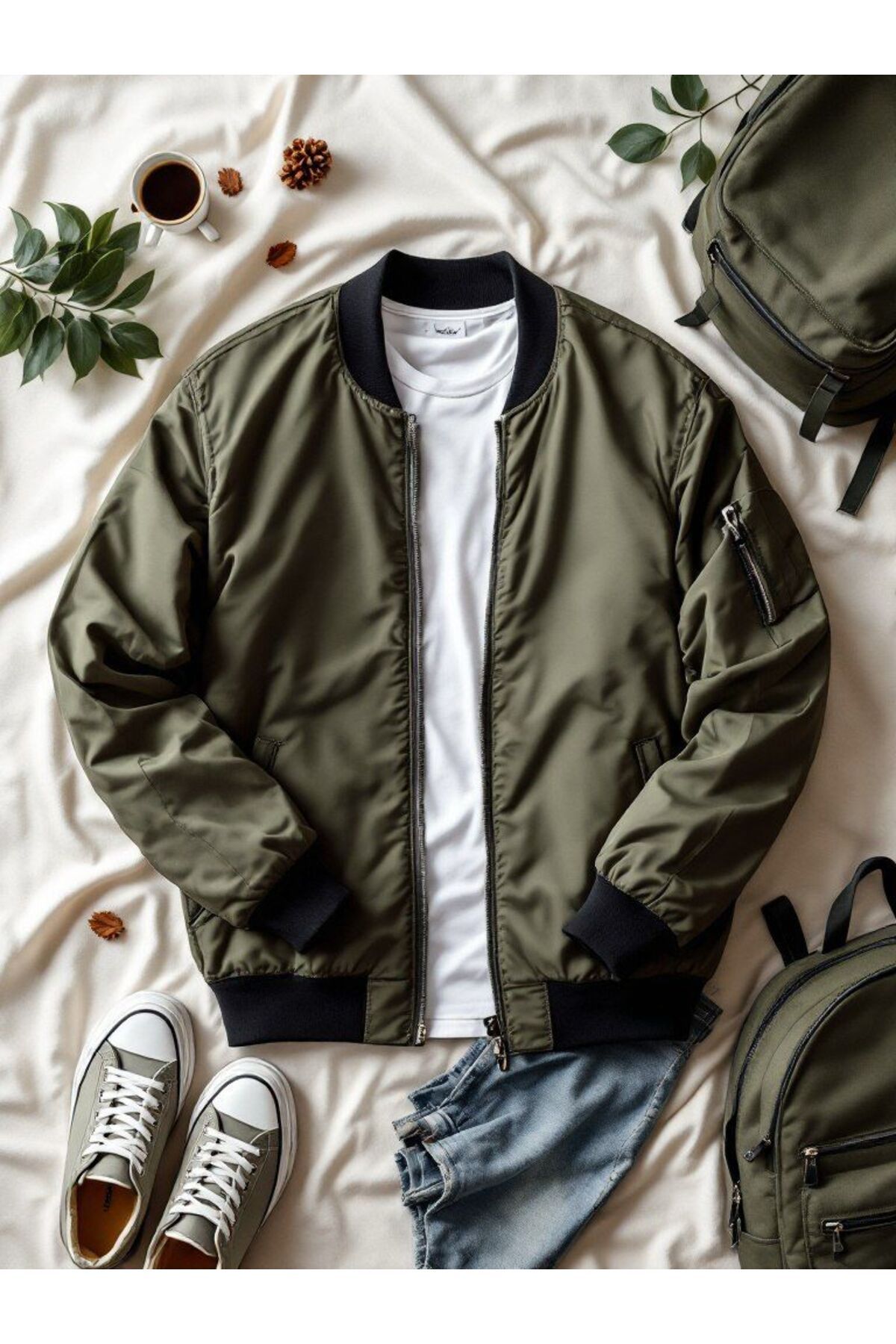 - Unisex tasarımı ile herkesin rahatlıkla tercih edebileceği haki oversize bomber ceket, günlük kullanım için idealdir.