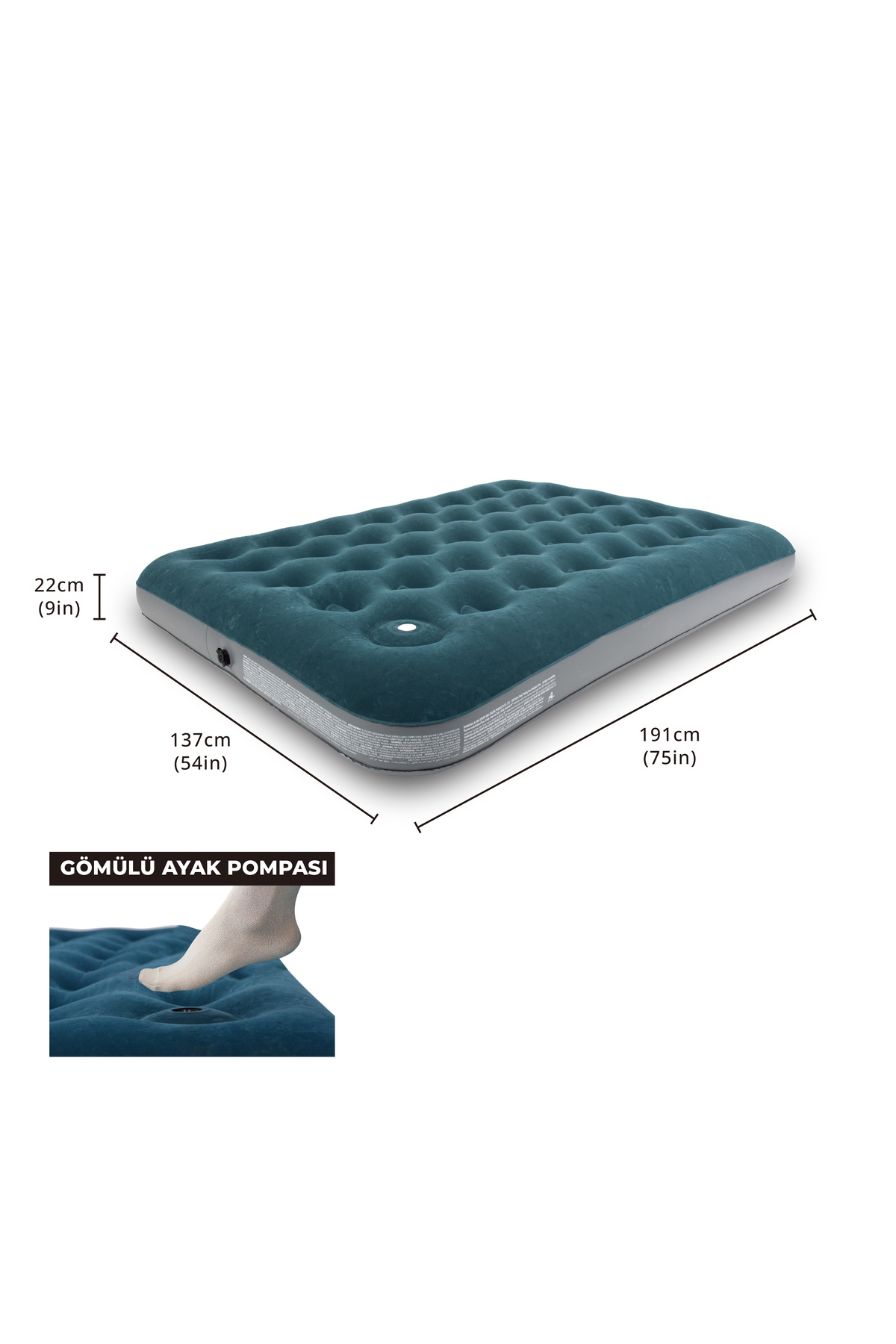 Ürün Özellikleri: Boyutlar: 191 cm x 137 cm x 22 cm (75 inç x 54 inç x 9 inç) Kapasite: 2 yetişkin için uygundur Taşıma Kapasitesi: 200 kg Şişme Süresi: Yaklaşık 5 dakika Gömülü Ayak Pompası: Elektrik gerekmeden şişirme kolaylığı Malzeme: Dayanıklı PVC ve kadife kaplama üst yüzey Kullanım Alanları: Kamp, bahçe, seyahat, misafir odası Teknik Özellikler Çift kişilik (Double Size) 5 dakikada kolay şişirme 200 kg taşıma kapasitesi Dahili ayak pompalı sistem Kadife yüzeyli ekstra konfor Kamp ve ev kullanımı için ideal Taşıması kolay, hafif tasarım