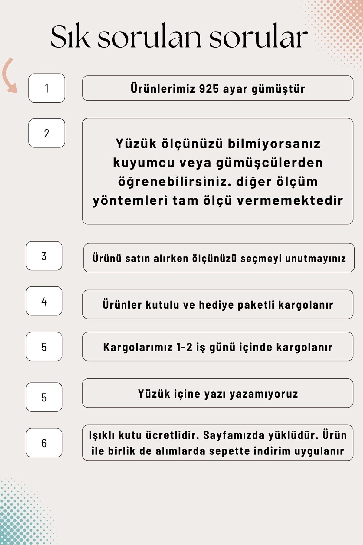4 mm genişlik 925 ayar gümüştür 1 adet ürün fiyatıdır ürün ağırlığı ortalma 3,3 gramdır ölçüye göre değişiklik gösterebilir ölçünüzü kuyumcu veya gümüşcülerden öğrenebilirisniz yanı pahlı eksik modeldir yüzeyi parlaktır gümüş üzeri kararmayan engelleyen rodyum kaplama vardır kutulu paketli şekilde kargolanır kargo süresi1-3 iş günüdür kullanmadığınız gümüş ürünleri hava almayacak şekilde kapalı bir poşet içinde saklayınız