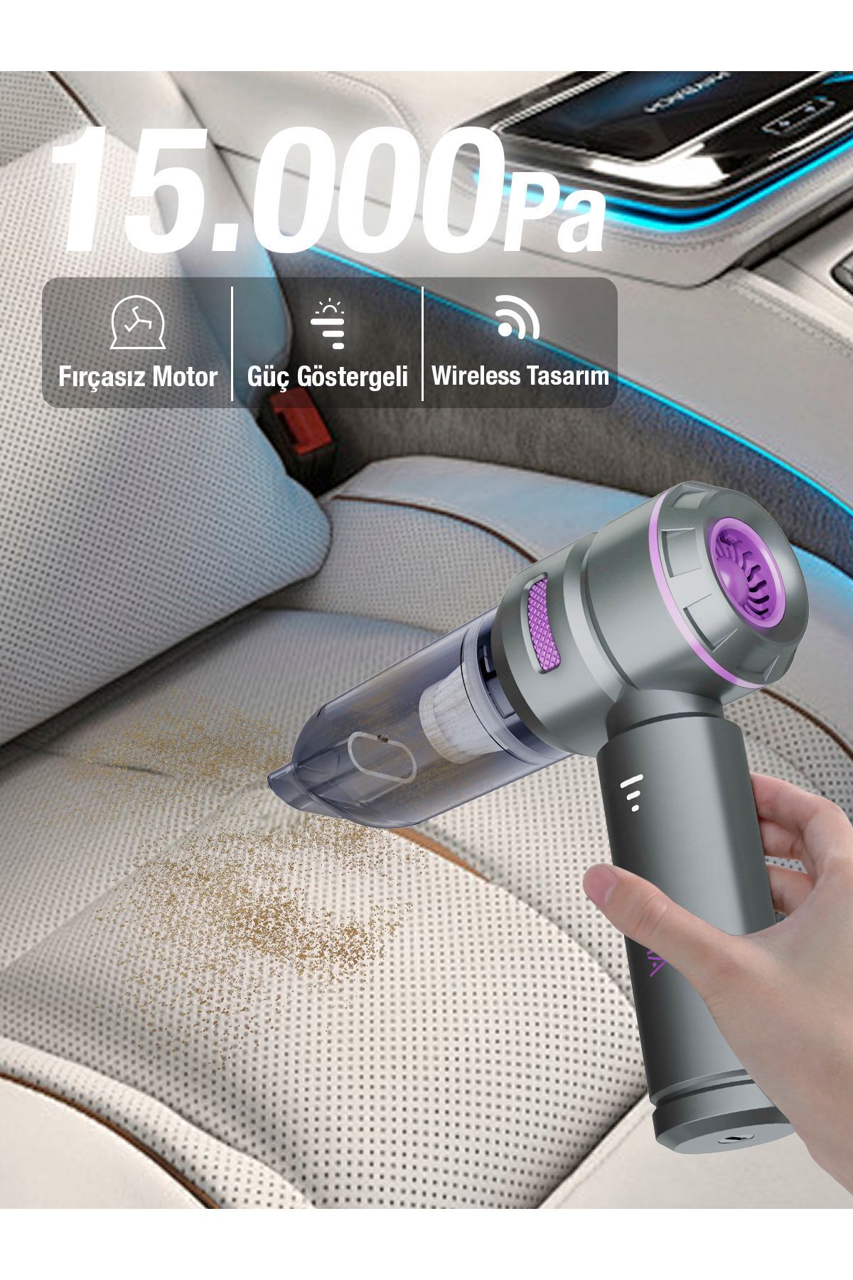 Şarj Edilebilir Akülü El Süpürgesi: Akülü el tipi araç süpürgemiz, 6000mAh şarj edilebilir bir pile sahiptir ve C Tipi şarjı destekler.