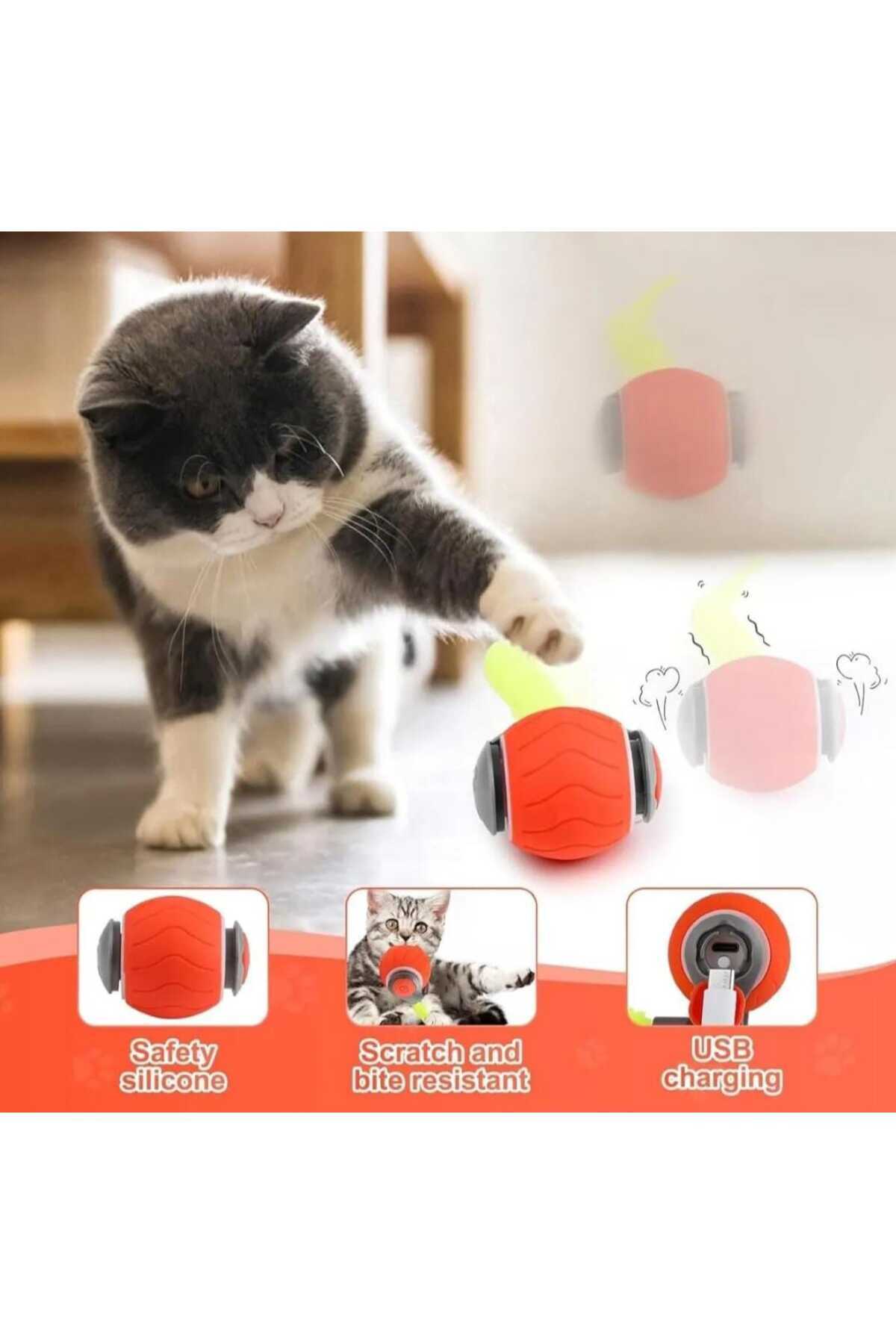 Evcil Hayvan İnteraktif Kuyruklu 360 Derece Dönen USB Şarj Edilebilir Hareketli Gezen Top