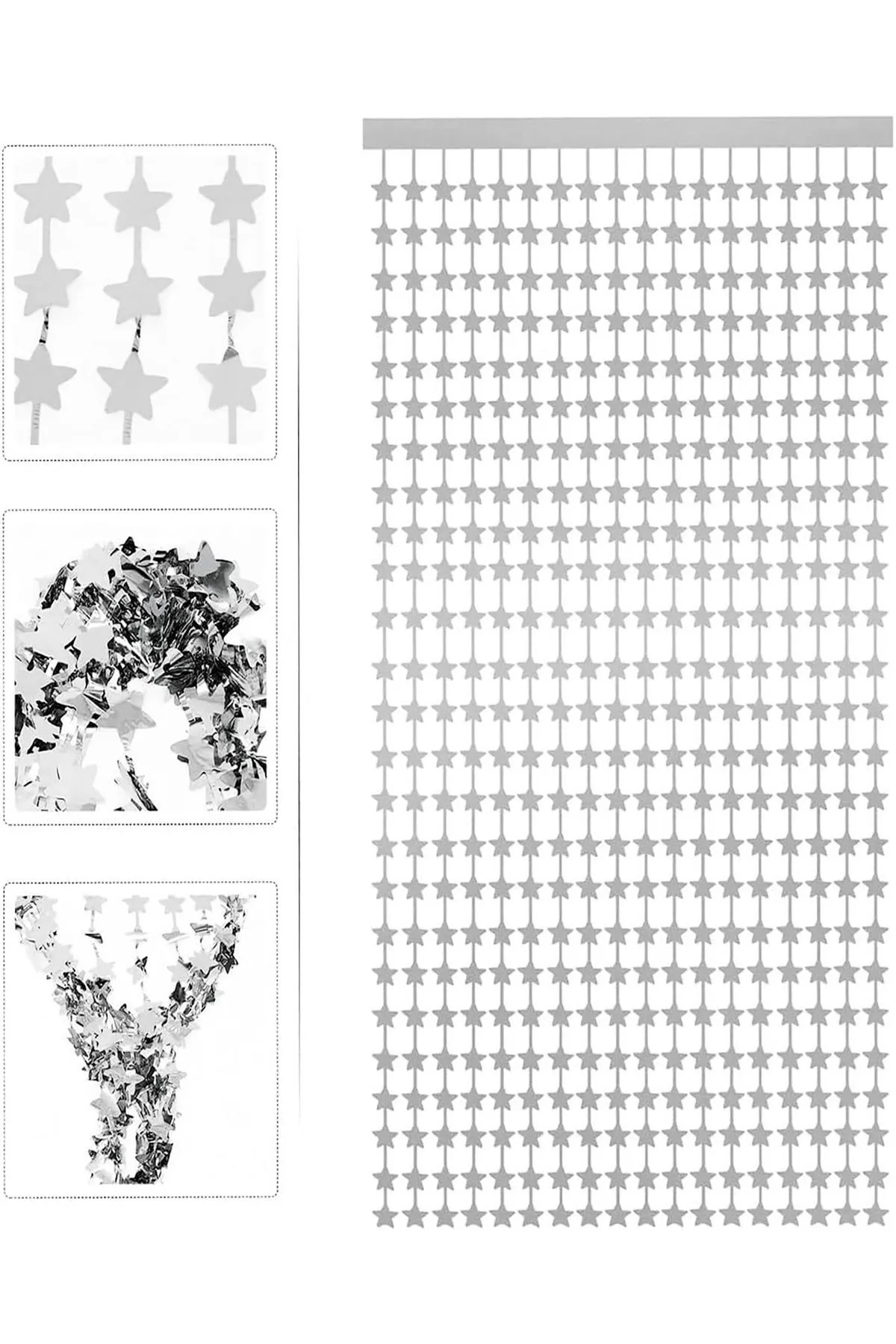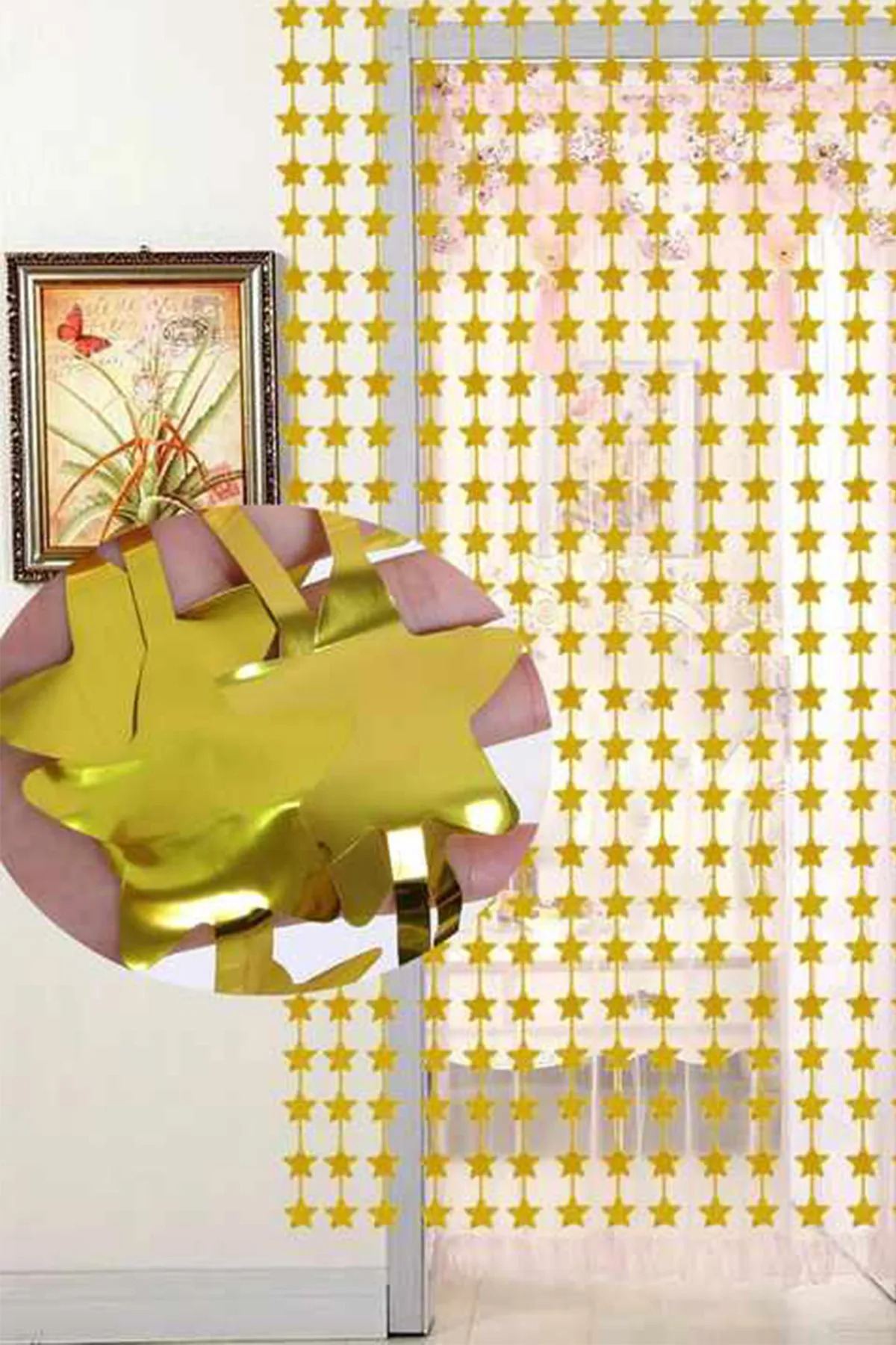 Metalize Yıldız Arka Fon Gold Renk Kapı Duvar Perdesi 90x200 Cm Metalik Duvar Püskülü Arka Fon