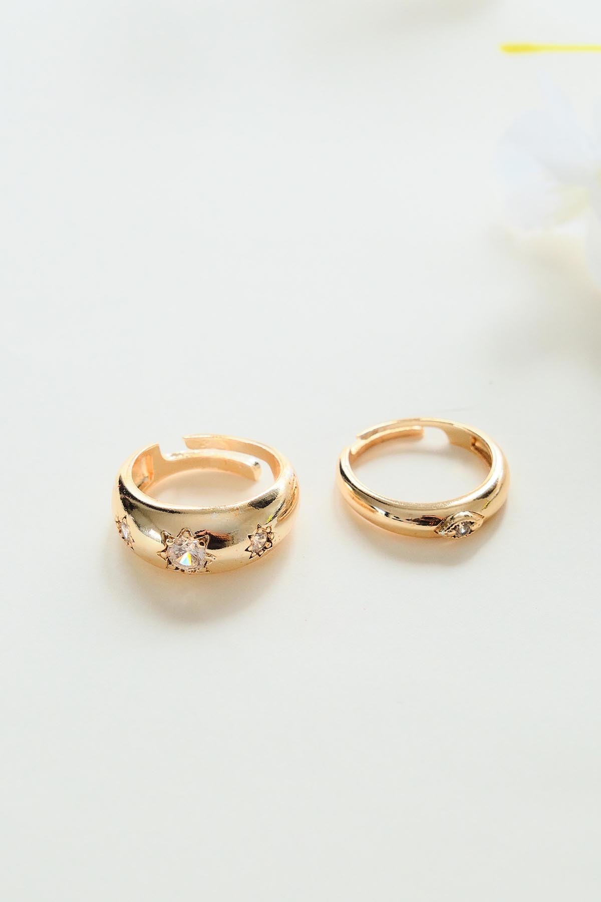 - Zarif tasarımıyla dikkat çeken bu 2'li zirkon taş bombeli yüzük seti, şıklığınızı tamamlar.