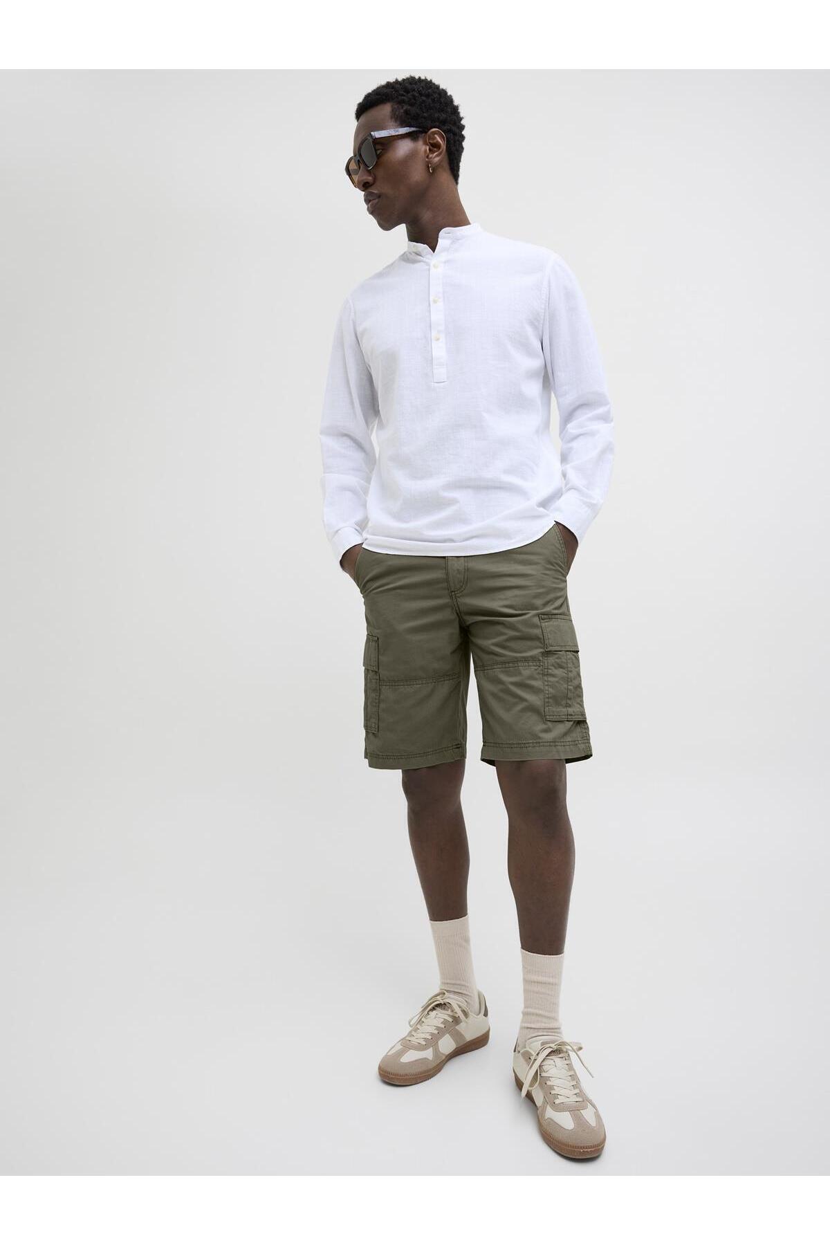 Cinsiyet: Erkek Üretim: Dokuma Üretim Detayı: Twill dokuma Kompozisyon: %100 Pamuk ✅ Ürün Özellikleri Model Kodu: 12274389 Kumaş: %100 pamuk Kalıp: Relaxed fit (rahat kesim) Bel: Orta yükseklikte (mid-rise) Cep Detayları: Ön, arka ve yanlarda toplam 6 adet fonksiyonel cep Kapanış: Fermuarlı ve düğmeli ön kapama Renk Seçenekleri: Siyah, Castlerock (gri), Olive Night (haki), Moonbeam (bej) "Jack & Jones JPSTCOLE MATEO kargo şort, yaz aylarında hem şıklık hem de konfor arayan erkekler için ideal bir tercihtir.