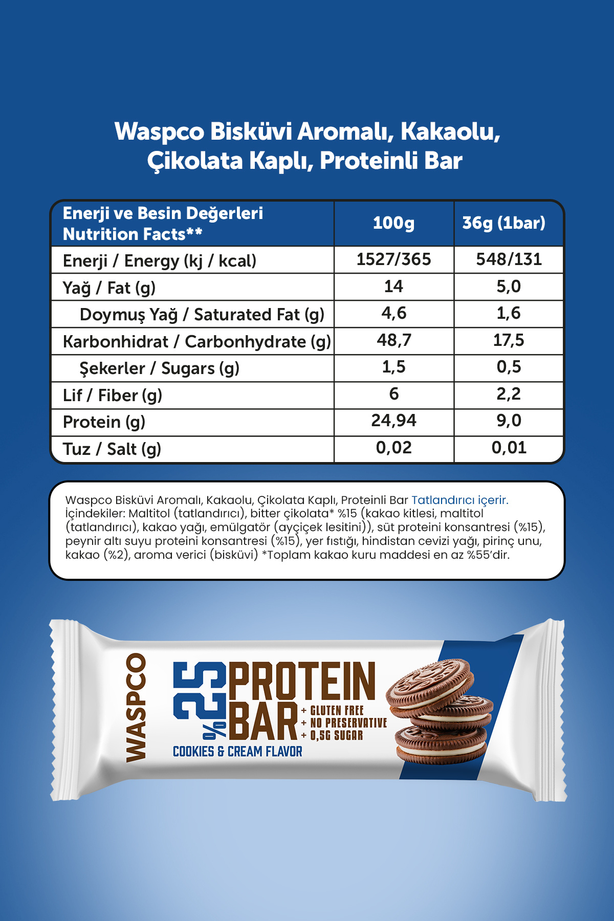 Bitter Çikolata Kaplı Bisküvi Aromalı Protein Bar 36g x 1 Adet