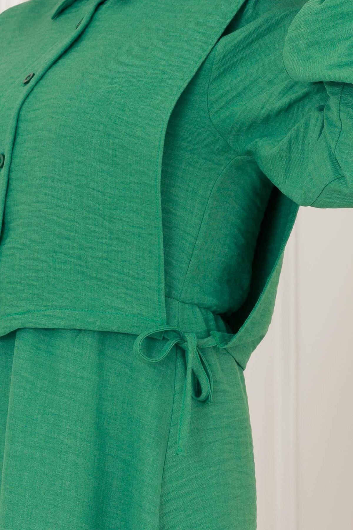 Yanları Bağlamalı Elbiseli Takım-Yeşil