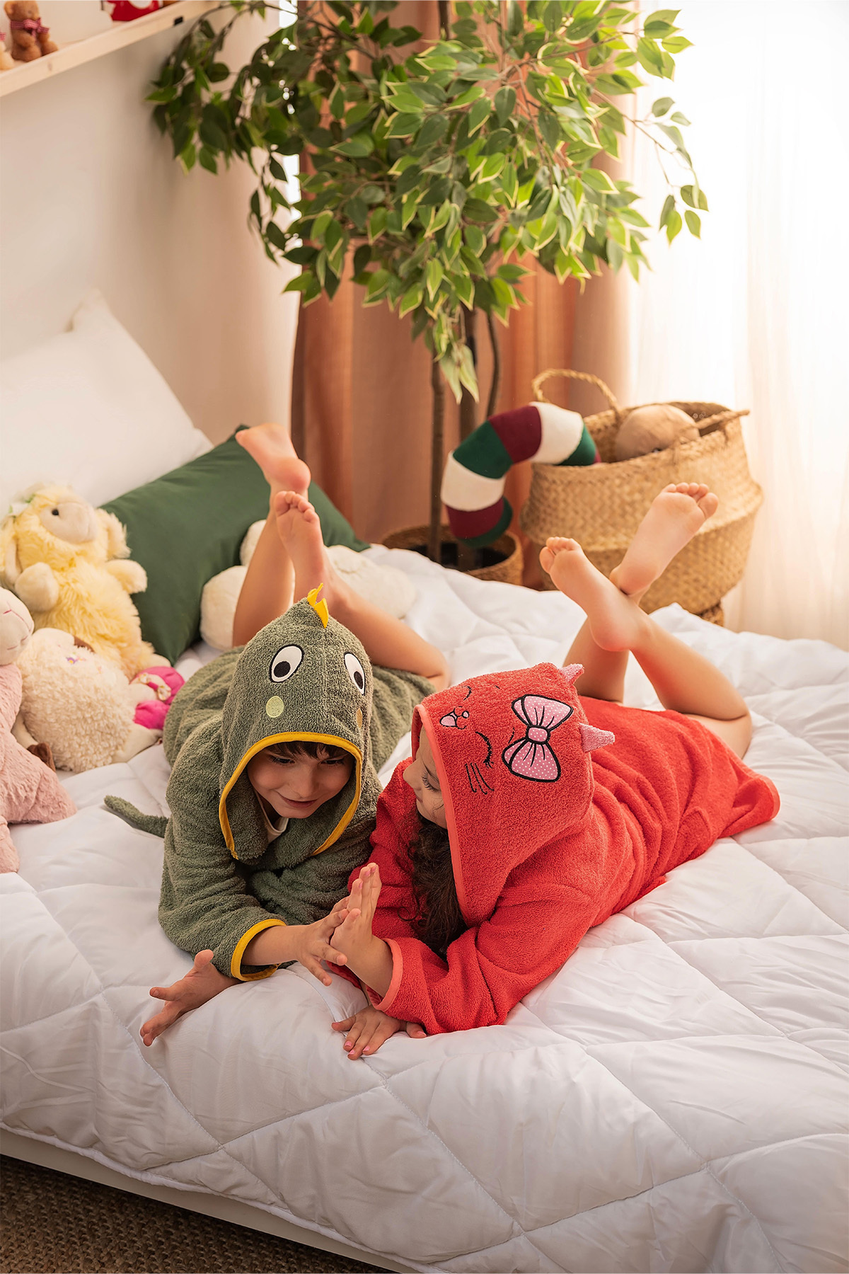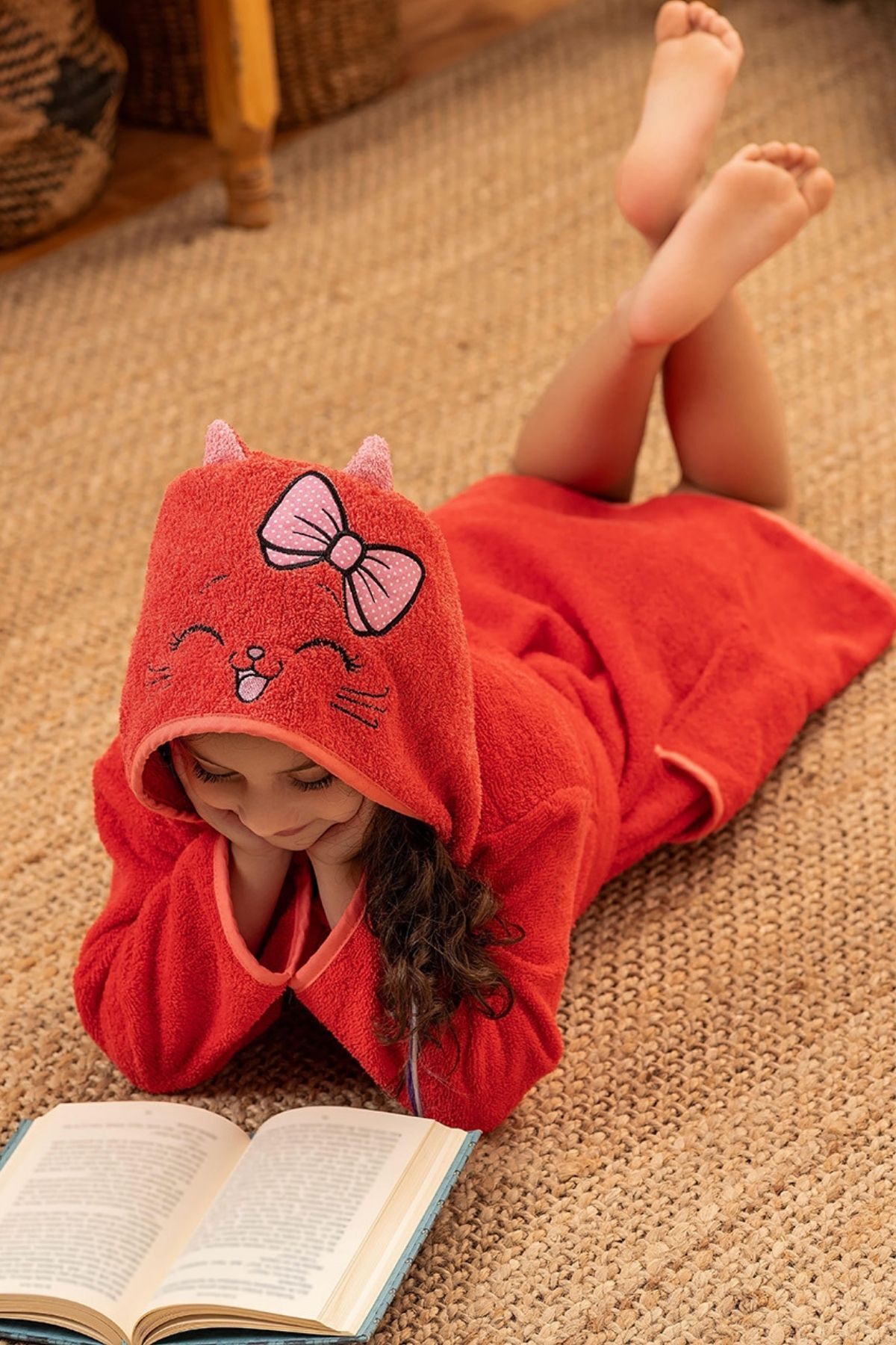 Tek parça olarak sunulan bu bornoz, çocukların rahatlığı düşünülerek tasarlanmıştır.