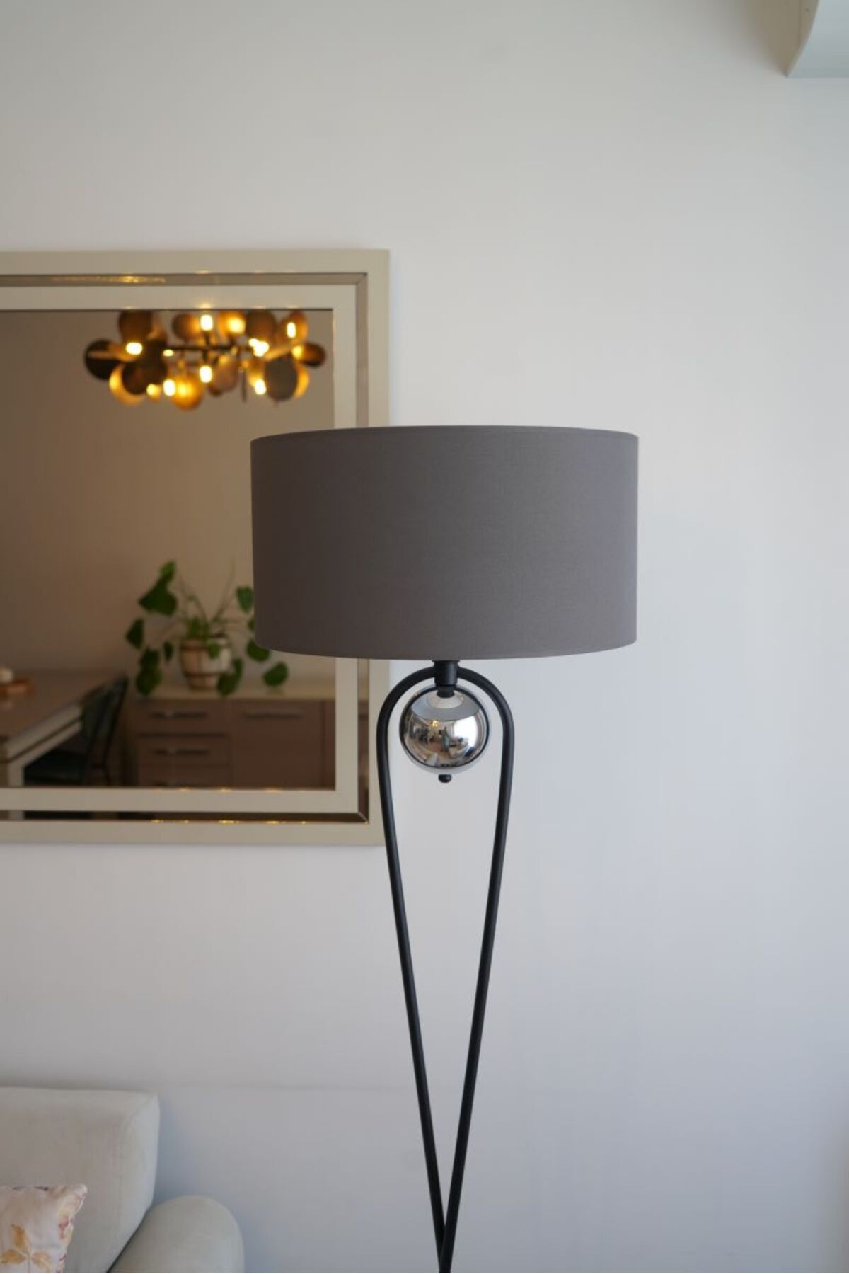 Sekiz Model Füme Şapkalı Siyah Krom Modern Tasarım Ayaklı Abajur Metal Lambader