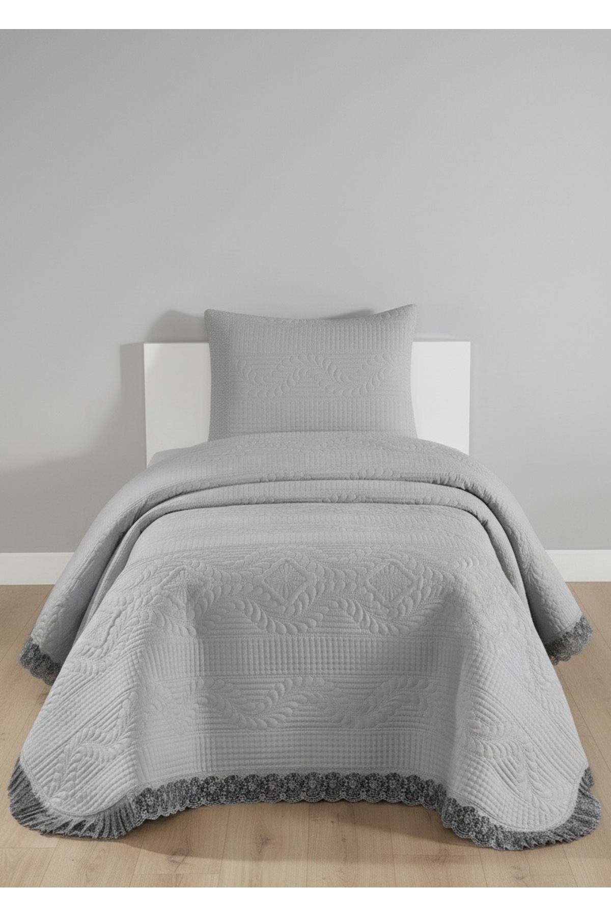 - Zarif krem rengi ile her yatak odasına uyum sağlayan güpürlü yatak örtüsü, şıklığı ve konforu bir arada sunar.