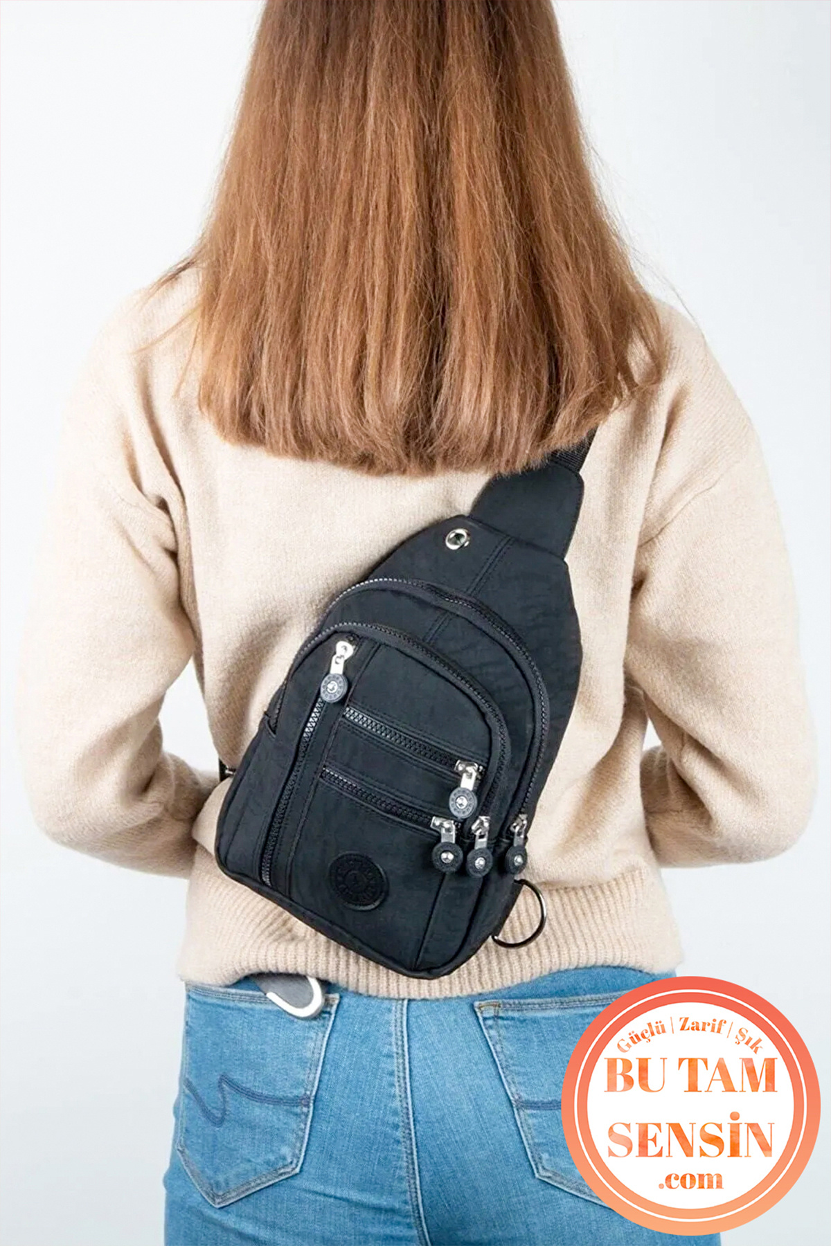 Zeytin Unisex Su Geçirmez Krinkıl Kumaşlı Fermuarlı 5 Bölmeli Çapraz Body Bag Vücut Çantası