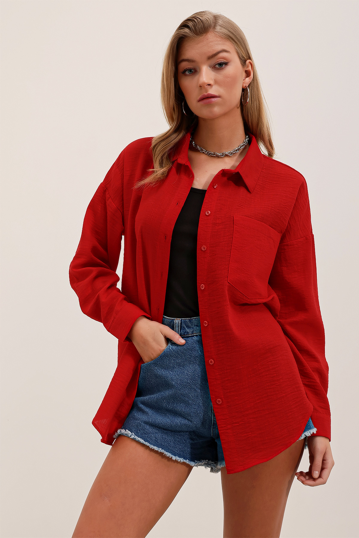 Ürün Içerigi %70 Viskon %30 Linen Ürün özellikleri: Tek Cepli Oversize Gömlek Model Bilgileri Bedeni : 38 Ürün Boyu: 76 cm Kol Boyu: 59 cm Manken Ölçüsü : Boy:176 Gögüs:90 Bel:63 Basen:94 Genel Yikama ve Kullanma Talimatlari El isi ve boncuklu ürünler hassas programda tersten yikanmalidir Baskili ürünler zamanla dökülebilir Yikamada ürünü bozmamak için 30 C'yi asmayiniz Ürünü yikarken yikama talimatina uygun olarak yikayiniz Renkli ürünlerde uygun deterjan kullaniniz Denim olan ürünler ve koyu renkli ürünler açik renkli diger ürünler ile yikanirken boyayabilir.