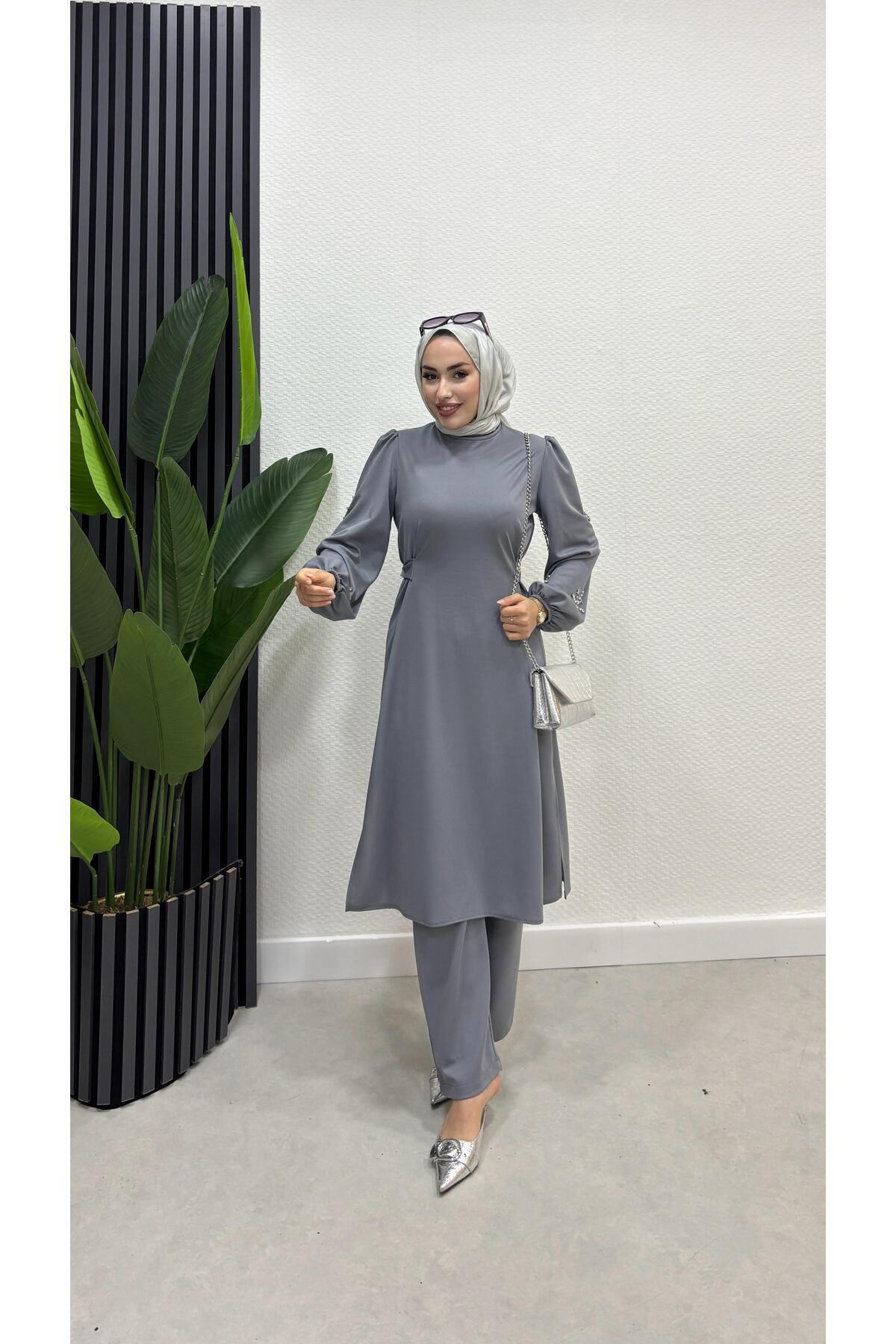 Kol boncuklu pantolonlu ikili takıım