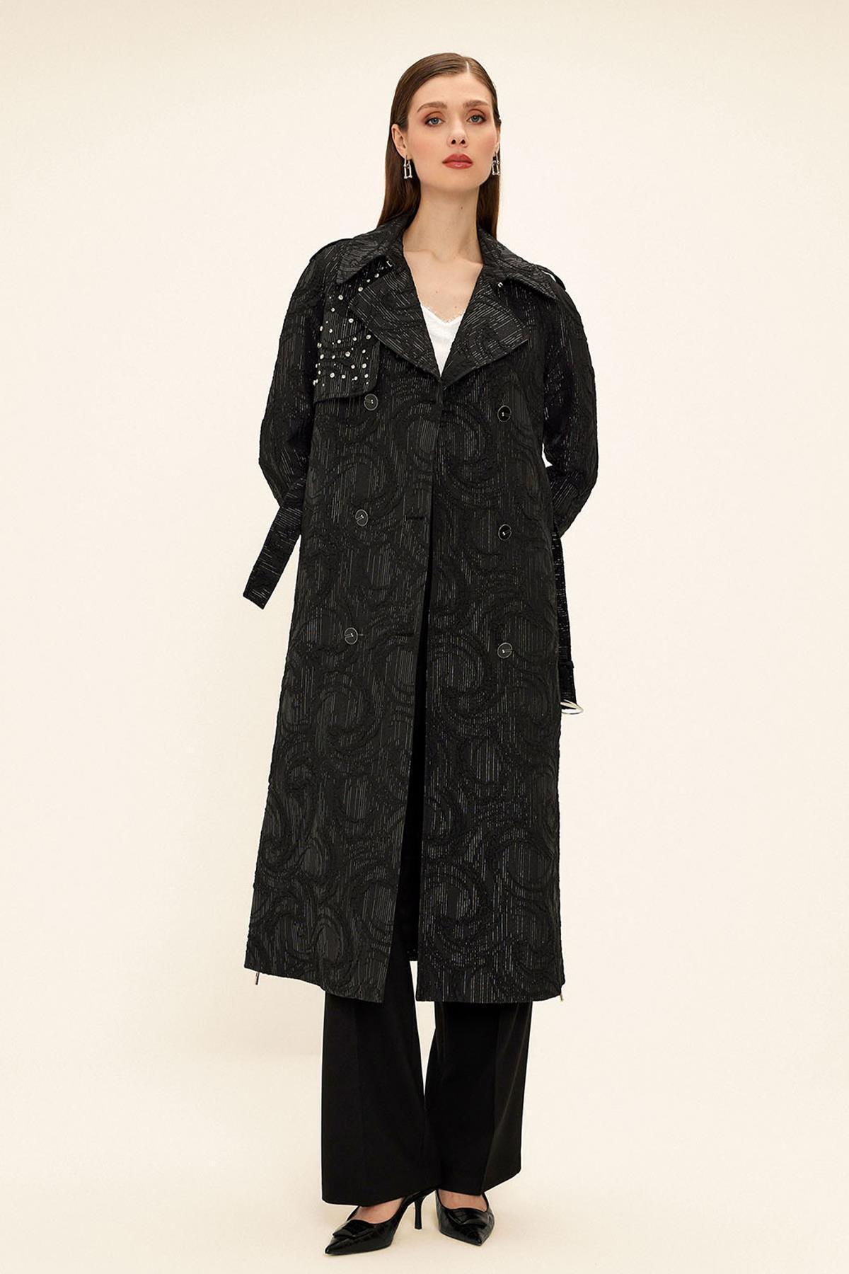 - Gömlek yakası detayı ile şıklığına şıklık katarken, uzun boyu sayesinde modern bir siluet oluşturur.