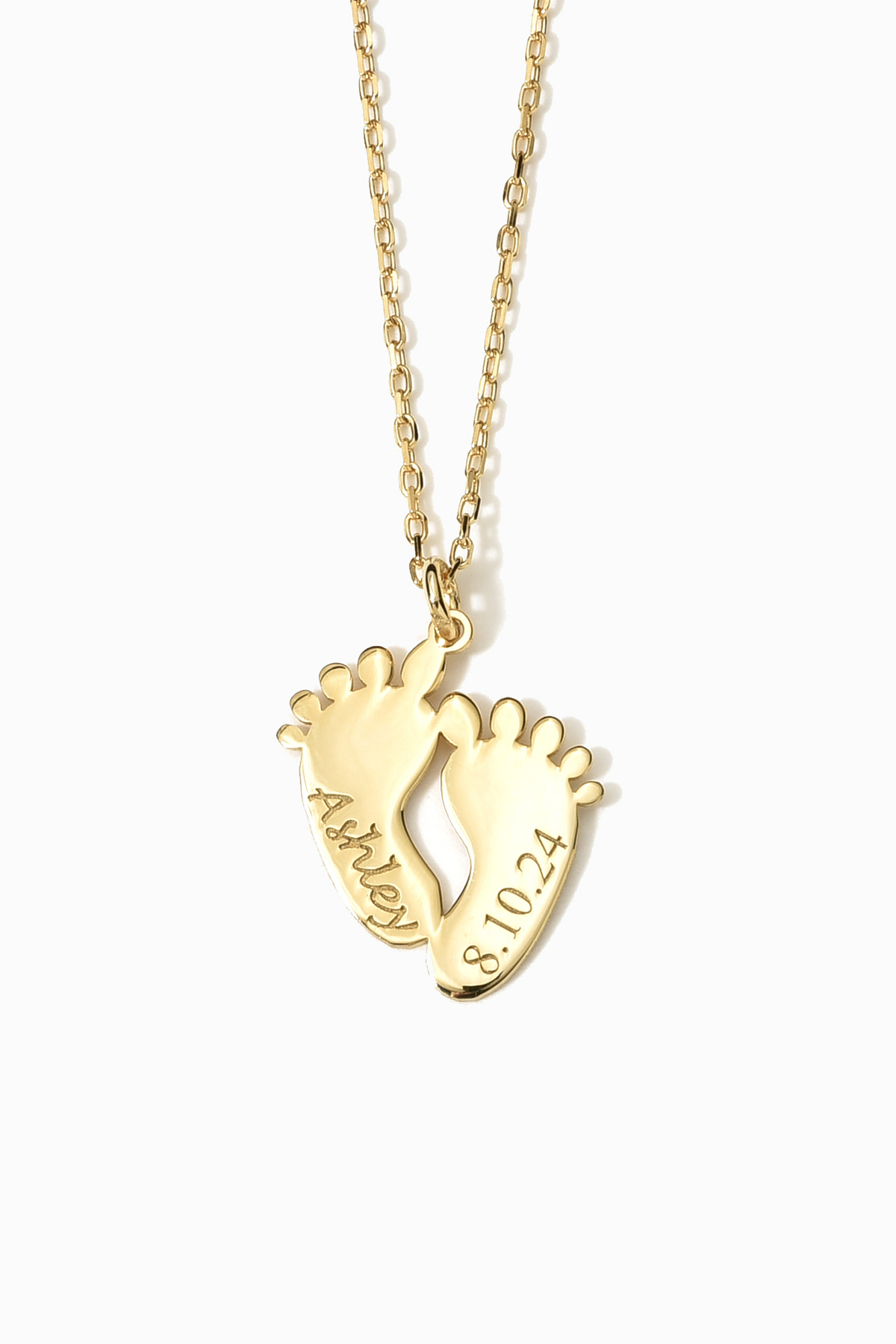 14 Ayar Altın Kaplama Kişiselleştirilmiş Bebek Ayağı Gümüş Kolye - CN00448