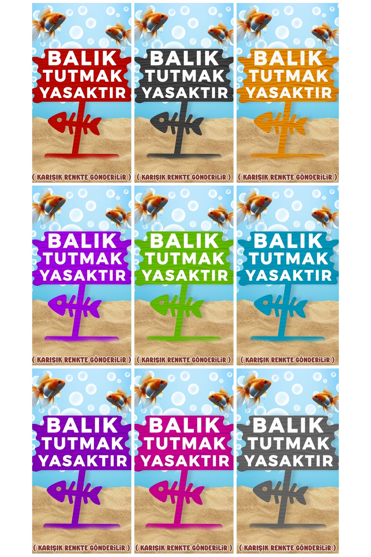 Balık Tutmak Yasaktır Dekoru ( Sarı - Renk ) Fanus , Küçük Akvaryum ve Büyük Akvaryum Uygun