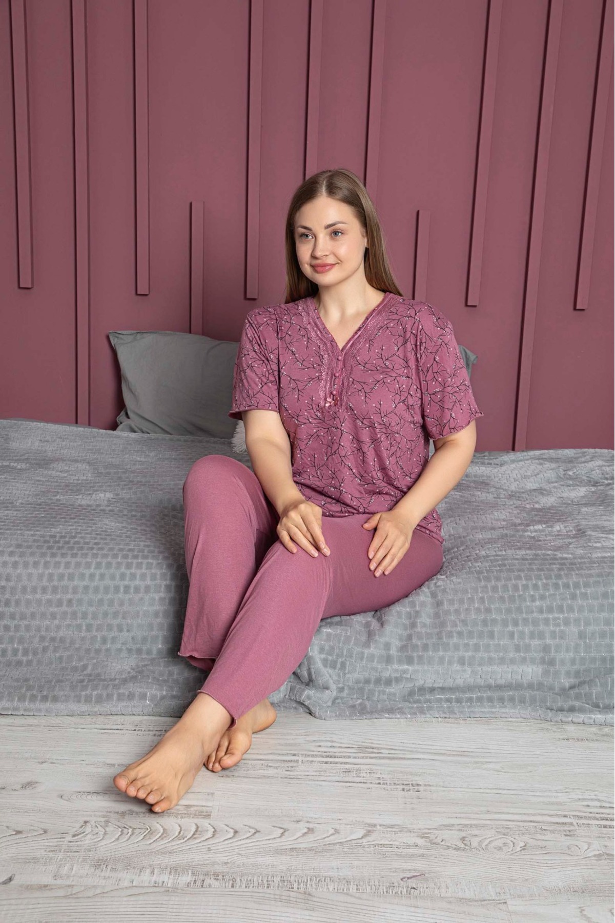 • Kadın Büyük Beden Kısa Kollu Bambu Pijama Takımı