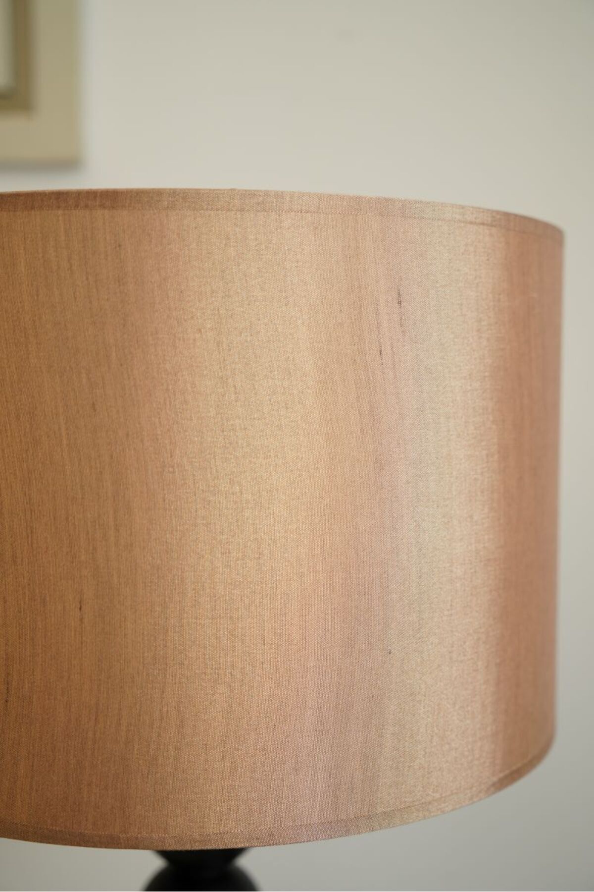 Siyah Ayaklı Silindir Bal Renk Kumaşlı Masa Lambası Abajur Salon Yatak Odası