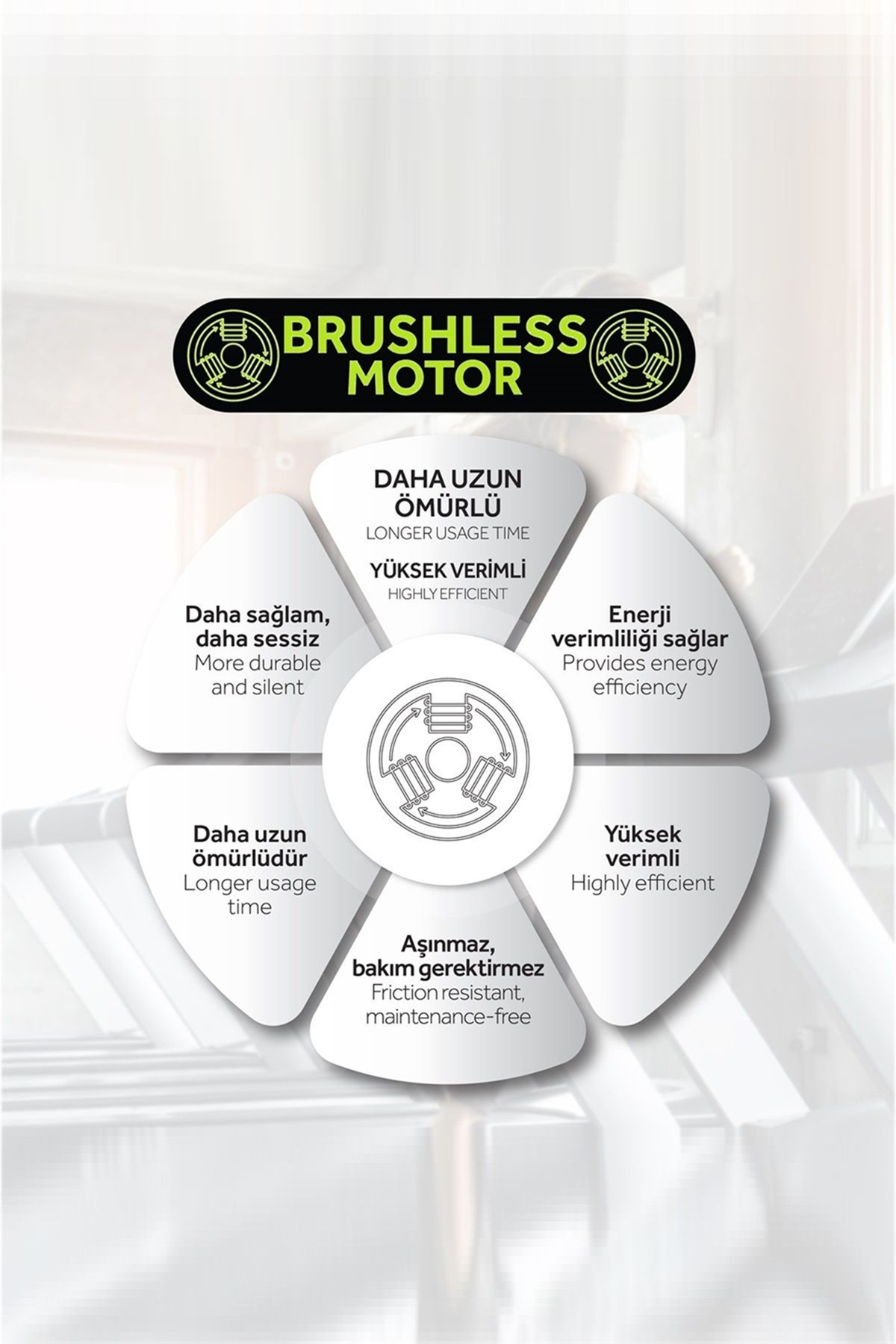 Motor: Brushless (Bakım gerektirmez, yüksek verimli, tasarruflu)