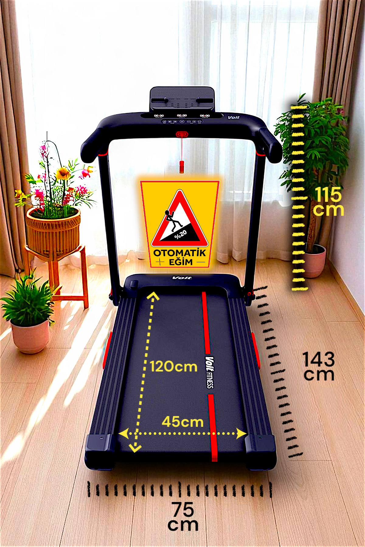 Eğim: Otomatik (Bandın üzerinden inmeden sadece tuşa basarak eğim ayarlanabilir)
